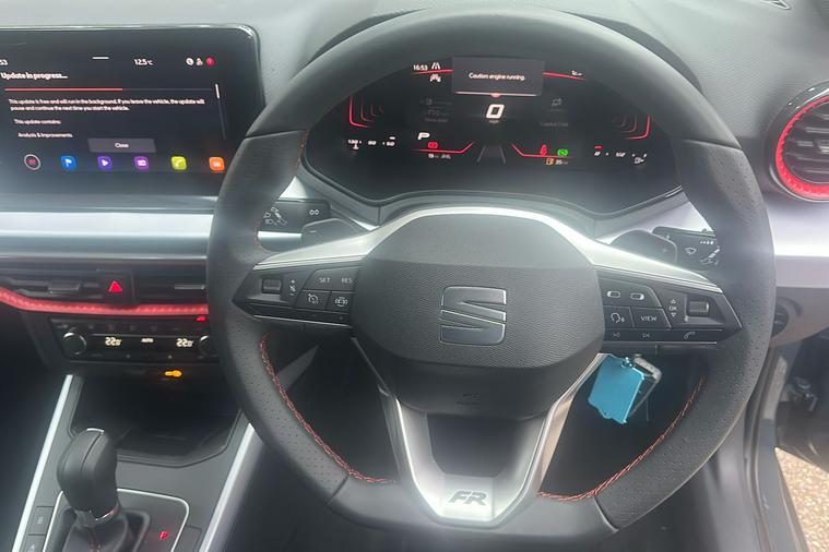 - Perforated Leather Flat-Bottomed Steering Wheel with Red Stitching and FR Logo with Leather Gear Knob and Handbrake