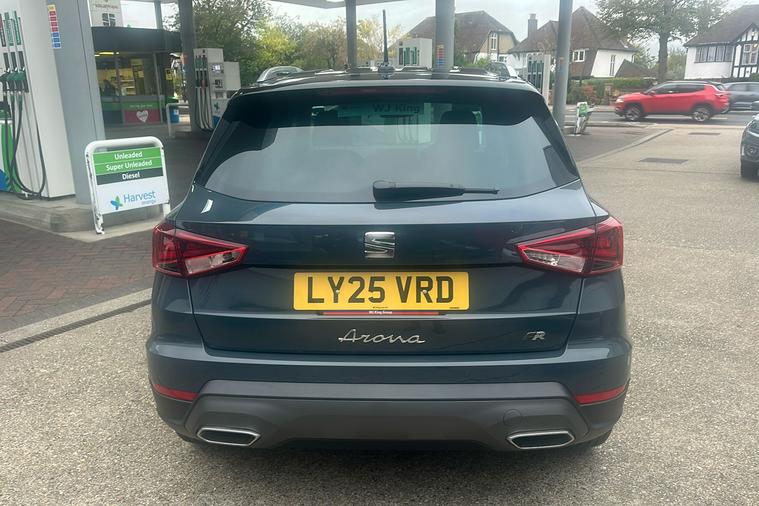 Discover the style and practicality of this used SEAT Arona FR, finished in striking Fiord Blue. Registered in July 2025, this compact SUV offers a blend of everyday efficiency and vibrant design. Enjoy seamless journeys with an automatic gearbox and economical petrol engine, offering an impressive combined 50.4 mpg. The spacious interior seats five comfortably and provides a generous 400-litre boot, ensuring you have ample room for everyday life. Standout features include 17-inch alloy wheels, a sleek contrast roof, and a sophisticated digital cockpit. Stay connected and entertained with a 9.2-inch navigation system and Full Link smartphone integration. Added details such as ambient interior lighting, wireless phone charging, and contemporary styling touches complete the experience. With a maximum speed of 120 mph and compliant with Euro 6 standards, this Arona is ULEZ compliant, making it ideal for both city and longer journeys.