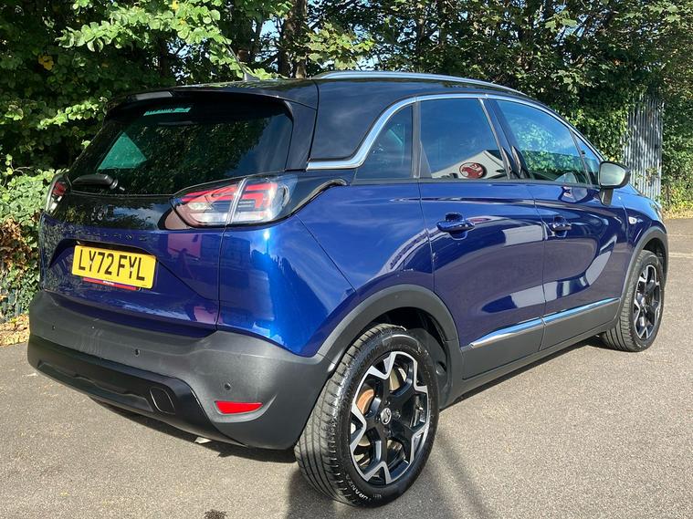 Experience versatility and style with this used Vauxhall Crossland Ultimate, first registered in January 2023. Dressed in an eye-catching metallic navy blue finish, this five-door SUV offers a comfortable and practical drive for both families and professionals alike. Powered by a 1.2 litre petrol engine with manual transmission, it delivers an impressive combined fuel efficiency of 49.6 mpg. Enjoy smooth acceleration from 0 to 62 mph in just 9.5 seconds and a top speed of 125 mph. With seating for five and a generous boot capacity of up to 1, 255 litres, there’s ample space for all your adventures. This model is ULEZ compliant, ensuring confidence for city driving. The Crossland Ultimate combines dynamic looks, thoughtful details and an enjoyable driving experience, making it an excellent choice for those seeking a well-equipped and reliable SUV.