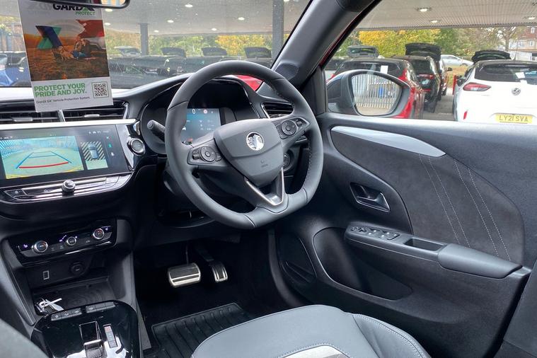 Experience standout style with this 2023 Vauxhall Corsa Ultimate, finished in striking Flame red. This five-door hatchback offers effortless driving thanks to its automatic transmission and responsive 1.2 turbocharged petrol engine, delivering 99 bhp and a top speed of 119 mph. Enjoy a roomy interior with seating for five, a generous 309-litre boot that expands to 1, 118 litres, and handy features like a panoramic rear-view camera for added confidence in any parking situation. The Corsa boasts eye-catching 17-inch alloy wheels in diamond-cut black, sporty styling, and dark tinted rear windows for a modern touch. With just one previous keeper, this car combines practicality and style while achieving an impressive combined fuel economy of 50.4 mpg. The Corsa Ultimate is also ULEZ compliant, making it a strong choice for city drivers seeking peace of mind and convenience.