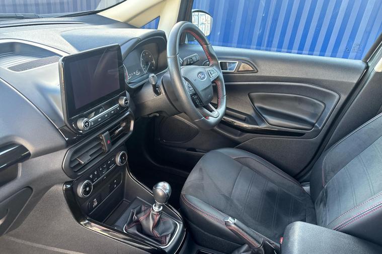This Ford EcoSport, registered in 2022, is a stylish and practical choice for those seeking a modern driving experience. As a T ST-Line variant with the ST-Line trim, it combines sporty aesthetics with everyday functionality. The 1.0L petrol engine is Euro 6 compliant, ensuring lower emissions.Equipped with an array of features, this EcoSport offers convenience and connectivity. Enjoy the comfort of electronic automatic temperature control, including climate control, and make parking easier with rear parking sensors. Stay connected on the move with Ford SYNC 3 Navigation, featuring an 8-inch touchscreen, Android Auto, and Apple CarPlay. LED low beam headlights and automatic headlights enhance visibility and safety. With a fuel economy of 46 mpg, this EcoSport stands out as an efficient option. Its low CO2 emissions also make it a more environmentally conscious choice compared to similar vehicles.