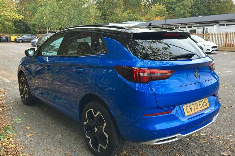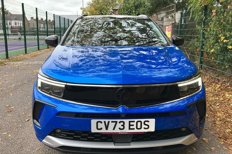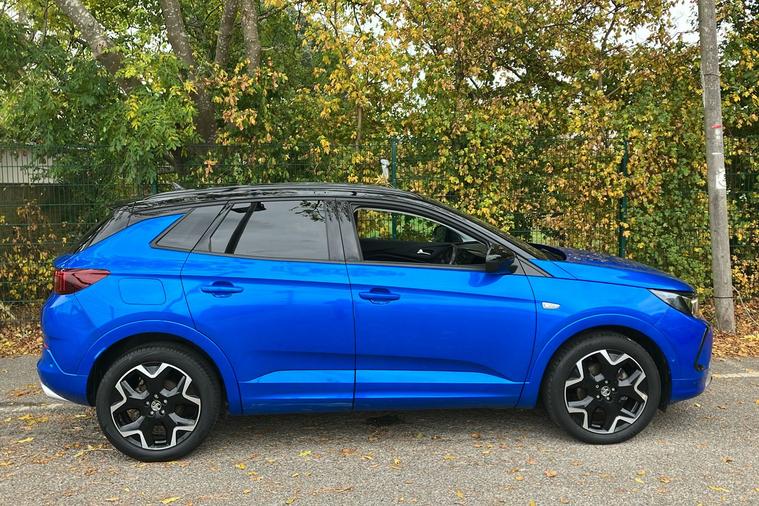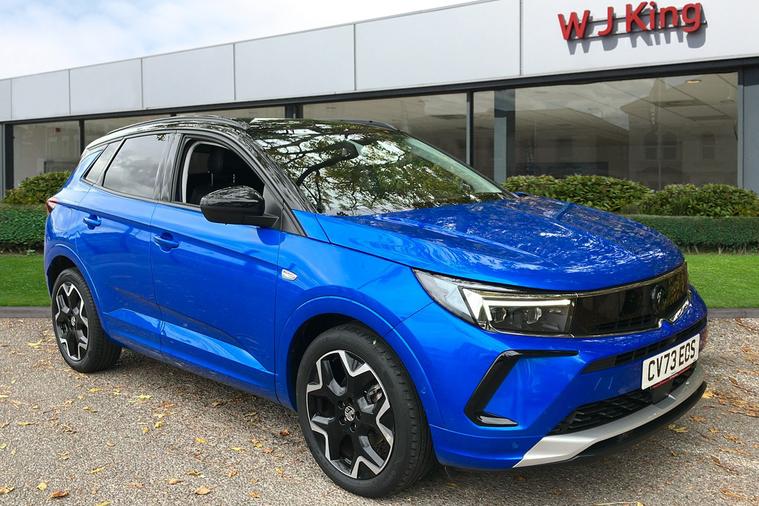 Introducing the 2021 Vauxhall Grandland Ultimate in eye-catching Spectrum Blue metallic. With just one previous keeper, this spacious SUV delivers an engaging driving experience, matched with practicality for modern life. Its efficient 1.2-litre petrol engine and manual gearbox promise responsive performance, reaching 62 mph in 10.4 seconds and a top speed of 122 mph, while returning a combined 46.3 mpg. Enjoy a generous boot space of 514 litres, expanding to 1, 652 litres with the seats folded for all your adventures. Distinctive features include dynamic 19-inch alloy wheels, a sleek black roof, advanced panoramic parking camera, IntelliLux pixel headlights, ergonomic heated sports front seats, keyless entry, a power tailgate with foot sensor, and a premium infotainment system. ULEZ compliant for city driving, the Grandland Ultimate brings style, comfort, and peace of mind to every journey.