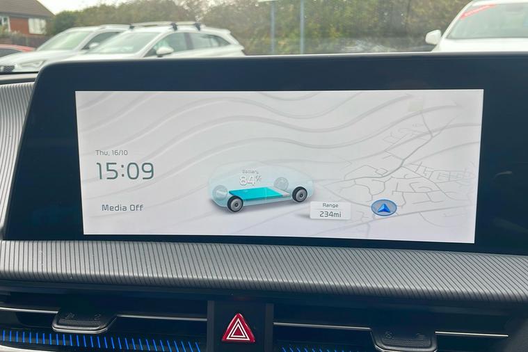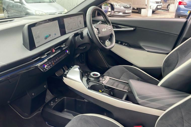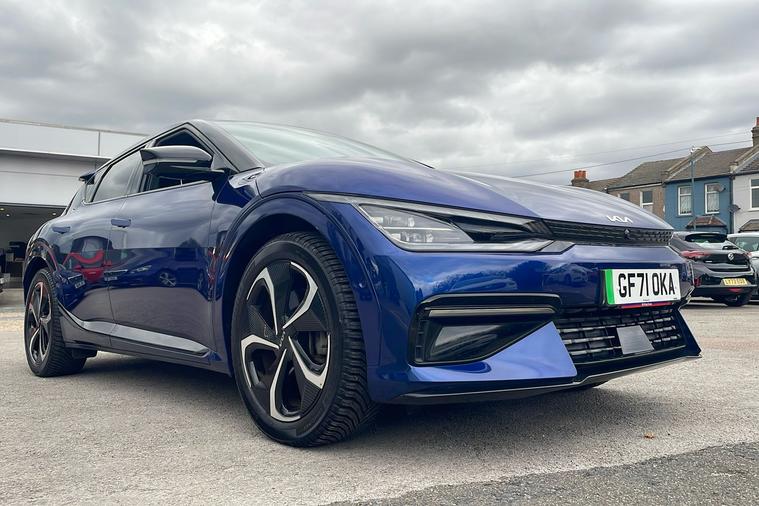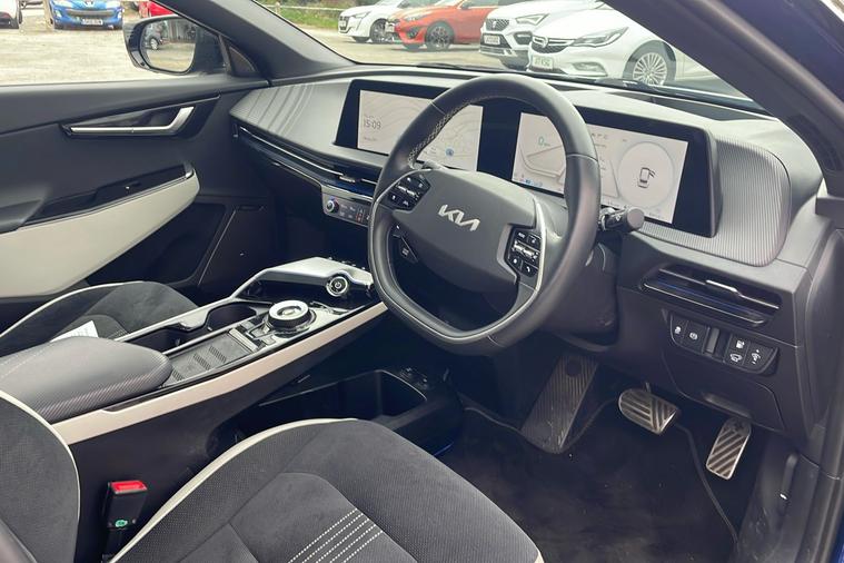 Finished in striking Yacht Blue, this 2021 Kia EV6 GT Line S is a smart choice for drivers seeking electric performance and style. With an electric range of up to 313 miles and a powerful 225 bhp output, it offers smooth rear-wheel drive and a top speed of 114 mph. The spacious 5-door hatchback design gives ample room for both passengers and luggage, with seating for five and a generous 480-litre boot. Highlights include a panoramic sunroof, ventilated front seats, heated rear seats, Meridian premium sound system, and an advanced head-up display. Safety is prioritised with features such as a 360-degree around view monitor, blind spot view monitor, and highway driving assist. Registered in December 2021 and with only one previous keeper, this stylish EV is ULEZ compliant and delivers a refined, eco-friendly driving experience for everyday journeys or longer adventures.