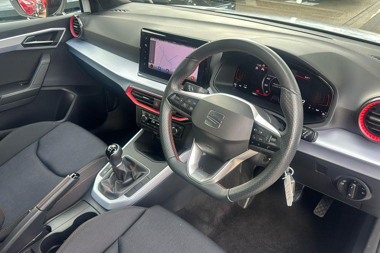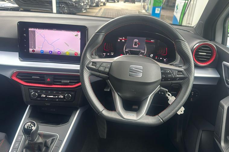 - Perforated Leather Flat-Bottomed Steering Wheel with Red Stitching and FR Logo with Leather Gear Knob and Handbrake