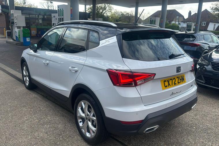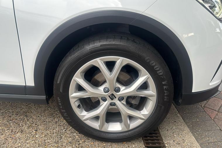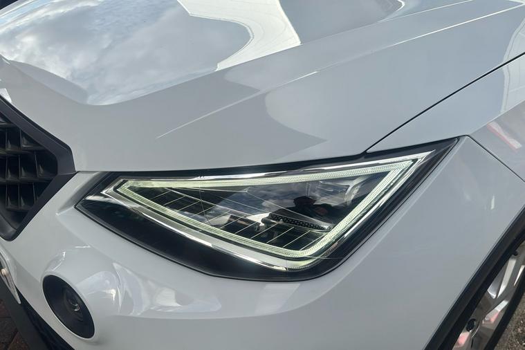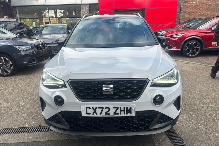 Experience style and comfort with this used SEAT Arona FR, finished in eye-catching Metallic Nevada White. Registered in late 2022, this popular SUV offers seating for five and a spacious 400-litre boot, making it a smart choice for both city drives and weekend adventures. With a combined fuel efficiency of 53.3 mpg, it’s designed to help keep running costs low. The lively 1.0 TSI petrol engine delivers 108 hp and a top speed of 118 mph, while the manual gearbox and front wheel drive offer a responsive driving experience. Standout features include striking 17-inch alloy wheels, a large 9.2-inch touchscreen display, wireless phone charging, and dual zone climate control. With only one previous keeper, this Arona also meets Euro 6 emissions standards and is fully ULEZ compliant for driving in London and other low-emission areas.