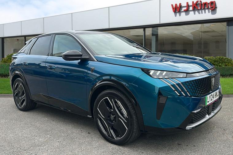 Experience electric driving at its finest with this 2023 Peugeot E 3008 GT. Having served as a demonstrator and freshly registered in June 2024, it showcases a striking Obsession Blue metallic finish and the versatility of a five-door SUV. Enjoy an impressive electric range of up to 326 miles, powered by a high-capacity 81.1 kWh battery, while the automatic transmission ensures an effortless driving experience. With seating for five and a generous 588 litres of boot space (expanding to 1663 litres with the seats folded), there’s plenty of room for every journey. Capable of reaching speeds up to 105 mph, this E 3008 delivers smooth and confident performance. Fully ULEZ compliant, it provides an environmentally conscious choice for city and country roads alike—combining practicality, contemporary style, and cutting-edge electric performance in one exceptional package.