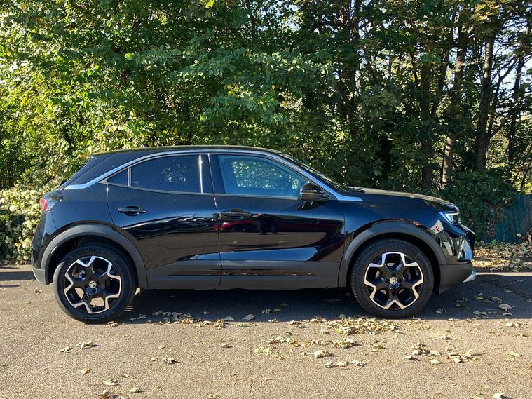 Experience the stylish Vauxhall Mokka in its Ultimate trim, finished in striking Metallic Carbon Flash. Registered in September 2022 and with just one previous keeper, this used SUV is designed to impress. The 1.2 Turbo petrol engine, paired with manual transmission, offers a lively drive with 128 hp, achieving 0–62 mph in 9.1 seconds and a top speed of 125 mph. Its combined fuel efficiency of 52.3 mpg makes it a practical choice for everyday journeys. The Mokka balances modern design with generous space for five passengers and flexible boot capacity, expanding up to 1, 105 litres. Highlights include advanced navigation, heated seats, a panoramic rear-view camera, and adaptive cruise control, providing both comfort and confidence on the road. As a Euro 6 petrol vehicle, it is fully ULEZ compliant, ensuring hassle-free driving in low emission zones. Discover urban sophistication and versatility in the Vauxhall Mokka Ultimate.