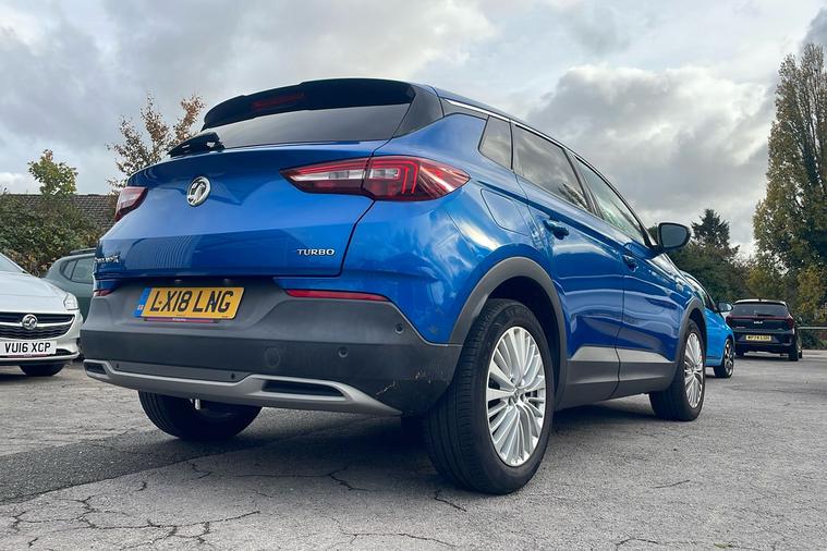 Presented in striking blue, this used Vauxhall Grandland X Tech Line Nav combines everyday practicality with comfort. Its efficient 1.2-litre petrol engine offers a smooth manual drive, complemented by a spacious interior with seating for five and generous boot capacity—514 litres with the seats up, expanding to 1, 652 litres. Registered in March 2018, this SUV achieves an impressive combined fuel economy of 53.3 mpg and reaches a top speed of 117 mph. Rear privacy glass and distinctive alloy wheels enhance its sophisticated appearance, while features such as keyless entry and start add convenience to every journey. Inside, the ambient lighting, adjustable comfort front seats and multi-function touchscreen navigation create a refined environment for drivers and passengers alike. This Grandland X is ULEZ compliant, making it an ideal choice for city driving as well as longer trips out of town.