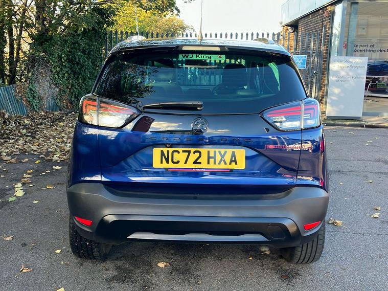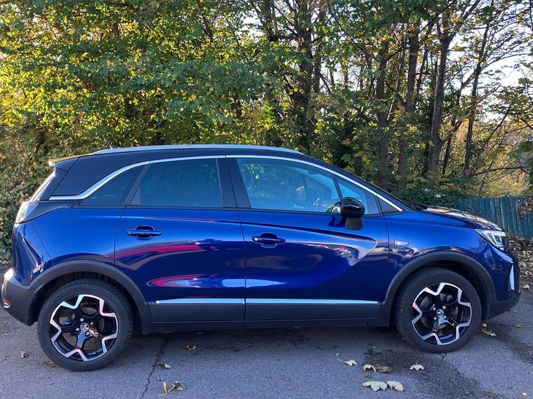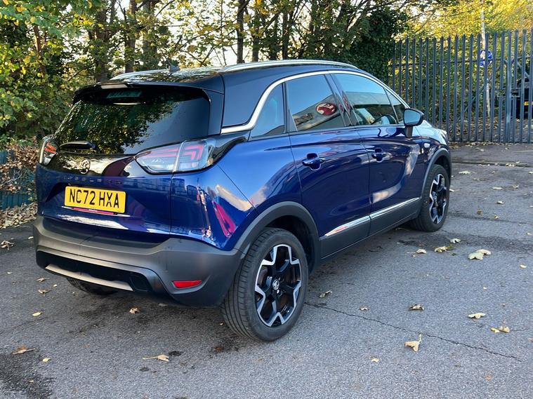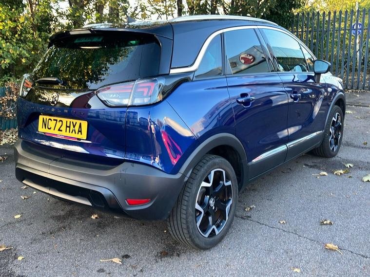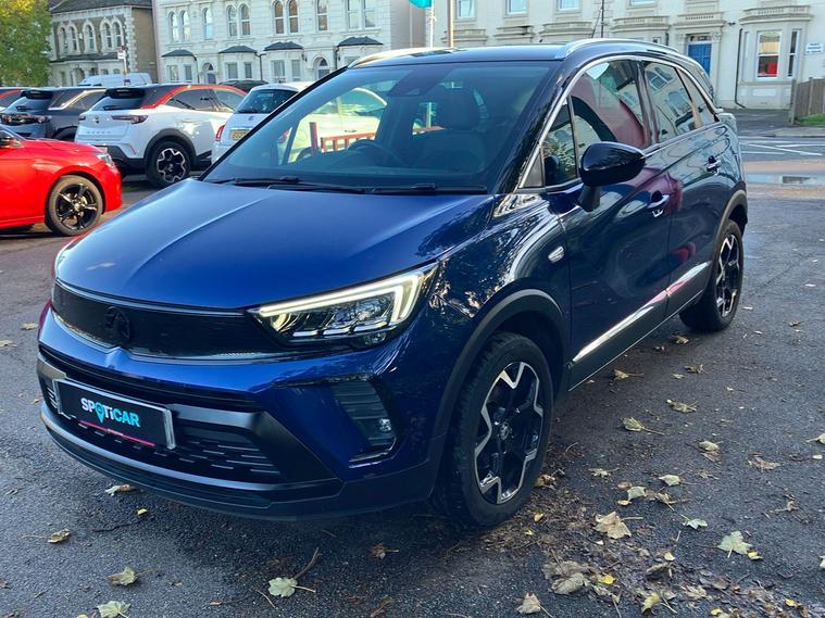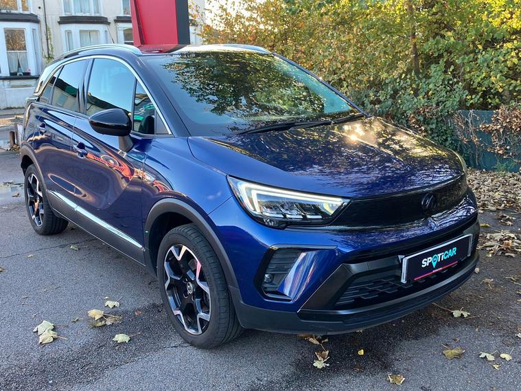 Discover the Vauxhall Crossland Ultimate, a stylish used SUV finished in Metallic Navy Blue with a black roof and striking 17-inch bi-colour alloy wheels. Registered in September 2022, this automatic model offers modern comfort for up to five people and boasts versatility with rear seats that split and slide, alongside a generous boot providing up to 1, 255 litres of space. Its efficient 1.2 Turbo petrol engine delivers 128 hp, allowing acceleration from 0–62 mph in 9.9 seconds and a top speed of 123 mph, while still achieving a combined 44.8 mpg. Enjoy the latest convenience with keyless entry and start, an advanced infotainment system with navigation on an 8-inch touchscreen, a panoramic rear-view camera, and dual-zone climate control. Designed for everyday practicality and comfort, the Crossland Ultimate is an appealing choice for drivers seeking a capable, well-equipped SUV.