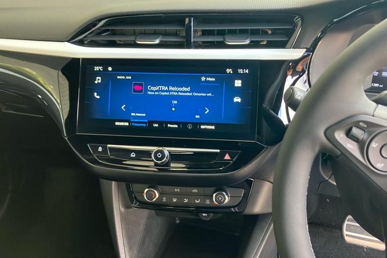 Introducing this 2023 Vauxhall Corsa Gs, a hatchback finished in striking two coat metallic Carbon Black. Featuring an automatic gearbox and front wheel drive, this stylish five-door car offers a modern and sporty look. With seating for five and clever boot space ranging from 309 to 1, 118 litres, there’s plenty of room for everyday journeys or weekend getaways. Enjoy a lively driving experience with 128 horsepower and a top speed of 130 mph, while achieving an impressive combined fuel efficiency of 49.6 mpg. As a recent model registered in late 2024 and with only one previous keeper, this Corsa combines practicality and excitement. Enhancements such as 17-inch diamond-cut hi-gloss black alloy wheels and sports body styling complete the package. Enjoy city driving with the assurance this vehicle is ULEZ compliant, helping you travel confidently through low emission zones.