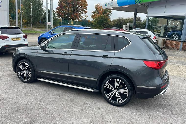 Introducing this used SEAT Tarraco XCELLENCE First Edition in striking Metallic Indium Grey. First registered in September 2019, this seven-seat SUV offers versatility and comfort for families or those needing extra space, with an impressive 700 litres of boot space—expanding to 1, 775 litres when required. Enjoy a smooth driving experience with a manual gearbox, front wheel drive, and a petrol engine delivering 148 hp and a top speed of 125 mph. The spacious interior is bathed in natural light thanks to a panoramic sunroof and features thoughtful touches such as a digital cockpit and advanced navigation system. Three-zone climate control keeps all occupants comfortable, and safety is prioritised with features like lane assist, a top view camera, and emergency braking. This car complies with Euro 6 emissions standards and is ULEZ compliant, making it ideal for urban driving as well as adventures further afield.