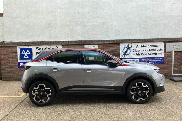 Introducing this used Vauxhall Mokka SRi Premium in a stylish grey finish, first registered in January 2022. This automatic SUV delivers a lively drive thanks to its 1.2 litre petrol engine, offering 128 horsepower and a swift 0–62 mph time of just 9.2 seconds. With a top speed of 124 mph and impressive combined fuel efficiency of 47.9 mpg, it’s both practical and fun on the road. The spacious interior seats five comfortably and provides a versatile boot space of up to 1, 105 litres with the rear seats down. Standout details include striking 18-inch bi-colour alloy wheels with red accents and a contrasting black roof. Designed to be ULEZ compliant, you can enjoy city driving with no added worries. This Mokka offers a great balance of dynamic style, economy, and everyday usability for your next journey.