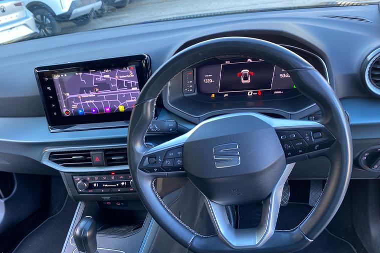 Introducing the SEAT Arona Xperience Lux in an eye-catching green finish, first registered in March 2022 and previously owned by just one keeper. This stylish SUV offers seating for five and generous boot space, making it ideal for both daily use and longer journeys. Powered by a responsive 1.0-litre petrol engine with automatic transmission, it delivers a lively drive and achieves a combined 46.3 mpg for efficient performance. With a maximum power of 108 hp and a top speed of 118 mph, it brings confidence to the road. Enjoy the comfort offered by features such as heated front seats, a digital cockpit, and dual zone climate control. The Arona Xperience Lux stands out with its 18-inch alloy wheels and advanced driver assistance systems, including adaptive cruise control and park assist. This vehicle is ULEZ compliant, offering peace of mind for city driving.