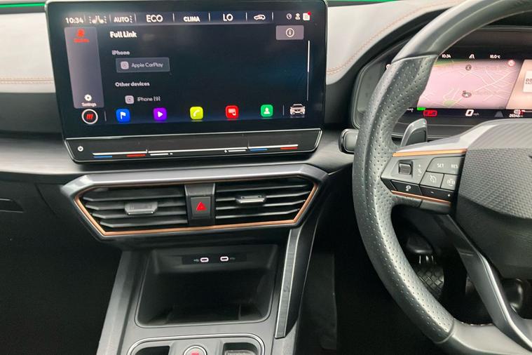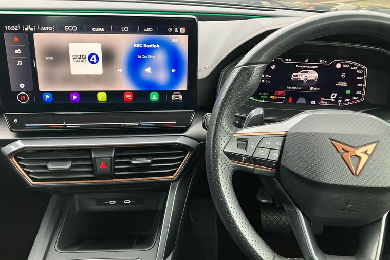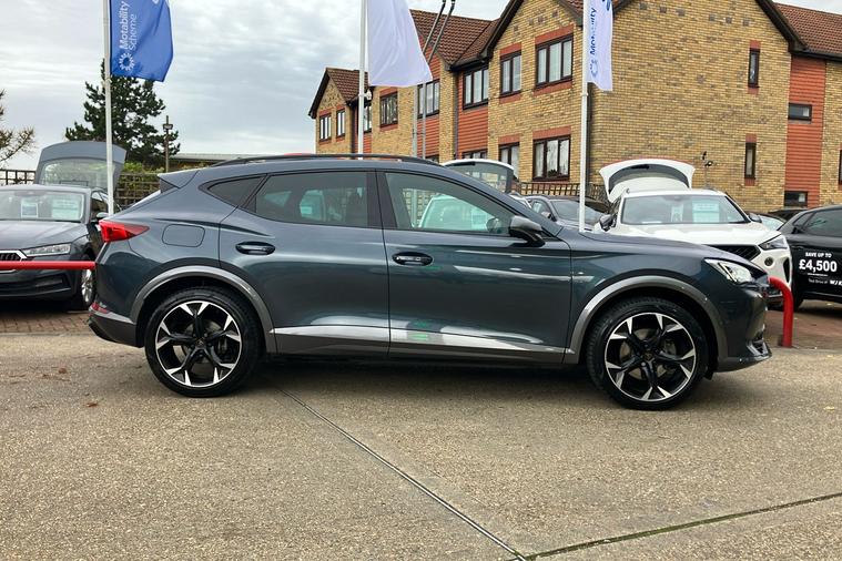 Introducing the Cupra Formentor V2, a used plug-in hybrid SUV finished in Metallic Magnetic Tech Grey. First registered in June 2024 and previously owned by one keeper, this Formentor offers both efficiency and style. Enjoy up to 35 miles of electric-only driving, making local journeys quieter and more sustainable. Its hybrid system helps return impressive combined fuel economy of 217.3 mpg. With an automatic transmission and front-wheel drive, the Formentor provides a smooth experience behind the wheel. Inside, the cabin is distinguished by copper and aluminium detailing, smart wraparound lighting, and a digital configurable dashboard. Practical touches include heated, memory door mirrors, three-zone climate control, and wireless phone charging. With five doors, generous passenger space and a 345-litre boot, the Formentor is ready for daily life. ULEZ compliant, this SUV lets you drive confidently in low emission zones across London and beyond.