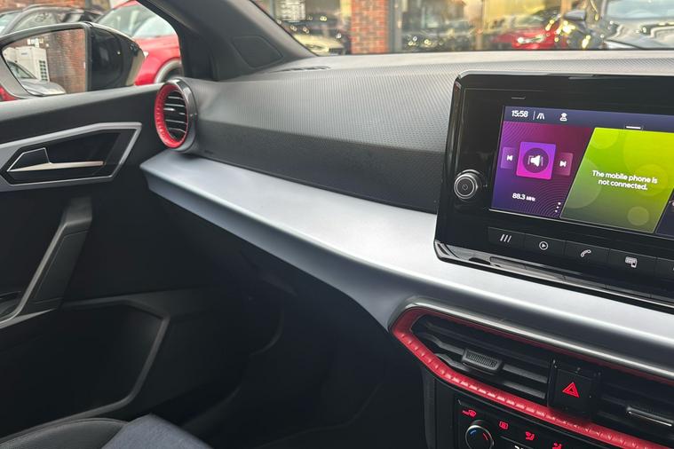 Discover the eye-catching blue 2022 SEAT Ibiza FR Edition, a stylish and practical hatchback with a fresh registration from November 2022. This model offers a lively drive thanks to its efficient 1.0 petrol engine, delivering up to 94 bhp and reaching a top speed of 116 mph, while providing an impressive combined mileage of 50.4 mpg. Enjoy advanced features such as 18-inch performance machined alloy wheels, sports suspension, rear parking sensors and a wireless phone charger. The Ibiza’s sporty exterior styling is complemented by a roomy and comfortable interior with seating for five and a generous 355-litre boot—ideal for daily use or weekend getaways. With modern connectivity, an easy-to-use touchscreen display, and environmentally conscious Euro 6 compliance, this Ibiza is ULEZ compliant for driving in Ultra Low Emission Zones. Perfect for those seeking a dynamic, efficient, and city-friendly car.