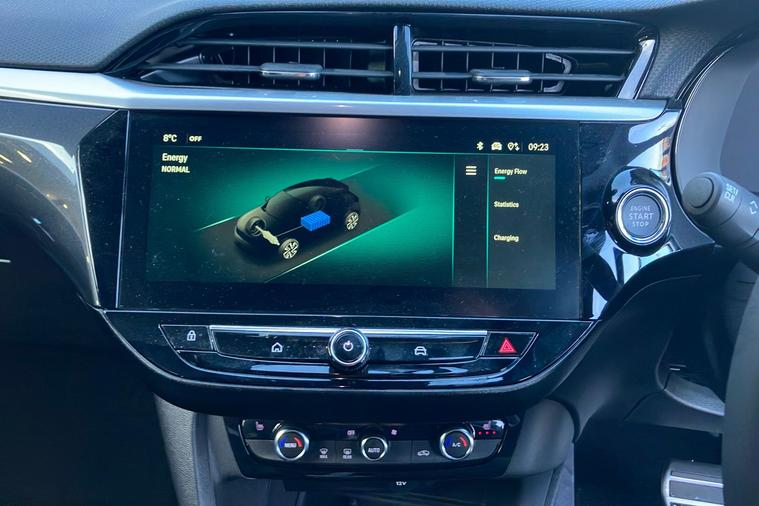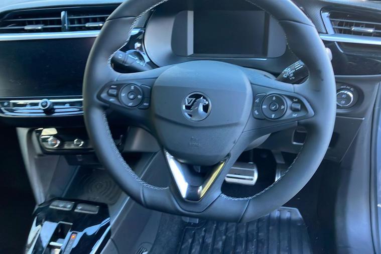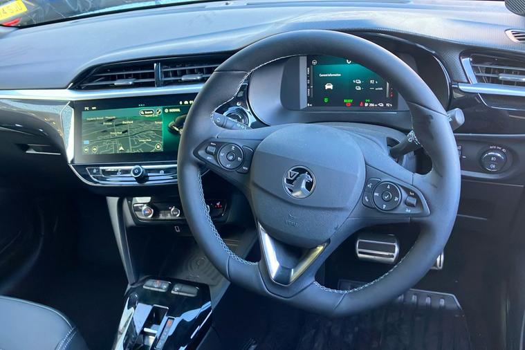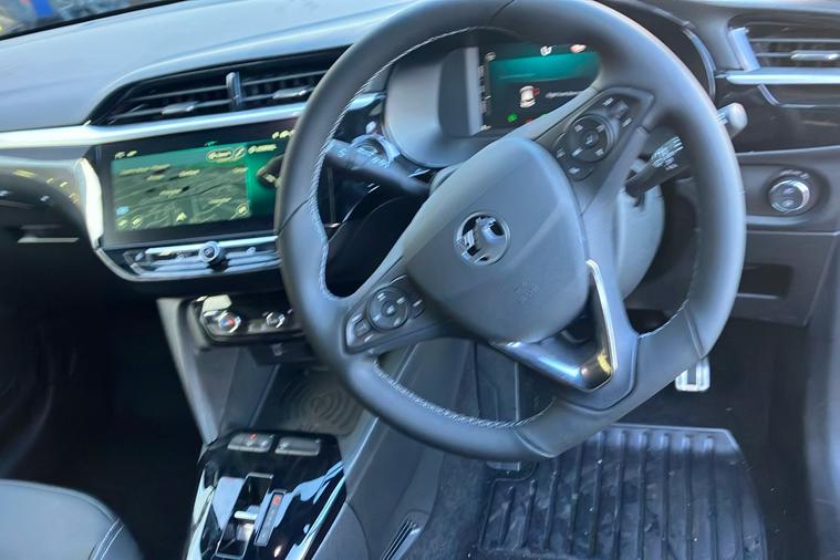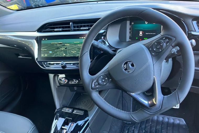 Introducing the 2023 Vauxhall Corsa Electric Ultimate in striking two coat premium metallic Graphic Grey. This pre-registered, physical stock model is designed for urban driving with a fully electric range of up to 220 miles. Effortlessly combining practicality and smart style, its 5-door hatchback body offers flexible space with up to 1, 081 litres of boot capacity and comfortable seating for five. Enjoy smooth journeys with front wheel drive, an automatic gearbox, and up to 134 horsepower delivering a maximum speed of 93 mph. Noteworthy features include 17-inch black alloy wheels with grey inserts, an advanced heat pump for climate comfort, and a panoramic 180-degree rear-view camera for extra visibility. Benefit from a vegan leather heated steering wheel and adaptive cruise control, while the Mode 3 22kW charging cable enhances convenience. This Vauxhall Corsa Electric is ULEZ compliant, making it an ideal choice for city and environmentally conscious drivers.