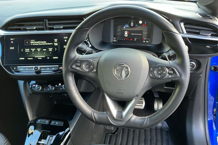Introducing the Vauxhall Corsa Ultimate Hatchback, registered in August 2022, finished in striking Voltaic Blue metallic paint. With just one previous owner, this stylish five-door car blends performance and efficiency—boasting a 1.2 turbocharged petrol engine delivering 128 bhp, a smooth automatic transmission, and an impressive combined fuel economy of 54.3 mpg. Enjoy quick acceleration from 0–62 mph in just 8.2 seconds with a top speed of 129 mph. The spacious interior comfortably seats five, with flexible boot space from 309 to 1118 litres. Highlights include 17-inch diamond-cut bi-colour alloy wheels, a panoramic rear-view camera for easier parking, adaptive cruise control, and advanced LED matrix headlights. The Vauxhall Corsa Ultimate is ULEZ compliant, making it ideal for city driving while remaining efficient on longer journeys. A superb blend of style, practicality and technology.