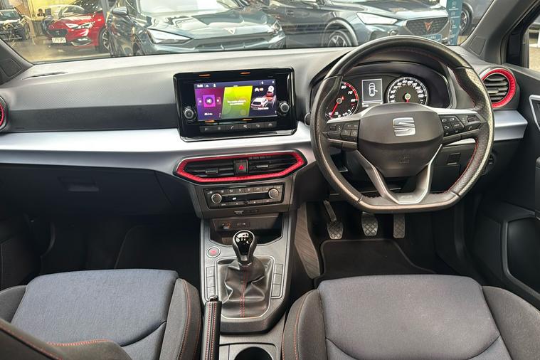 Discover the eye-catching blue 2022 SEAT Ibiza FR Edition, a stylish and practical hatchback with a fresh registration from November 2022. This model offers a lively drive thanks to its efficient 1.0 petrol engine, delivering up to 94 bhp and reaching a top speed of 116 mph, while providing an impressive combined mileage of 50.4 mpg. Enjoy advanced features such as 18-inch performance machined alloy wheels, sports suspension, rear parking sensors and a wireless phone charger. The Ibiza’s sporty exterior styling is complemented by a roomy and comfortable interior with seating for five and a generous 355-litre boot—ideal for daily use or weekend getaways. With modern connectivity, an easy-to-use touchscreen display, and environmentally conscious Euro 6 compliance, this Ibiza is ULEZ compliant for driving in Ultra Low Emission Zones. Perfect for those seeking a dynamic, efficient, and city-friendly car.