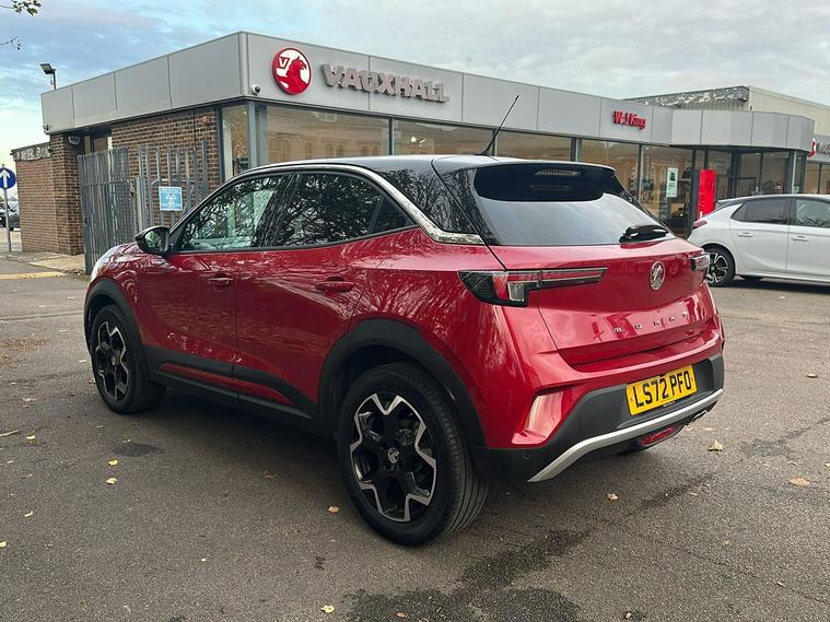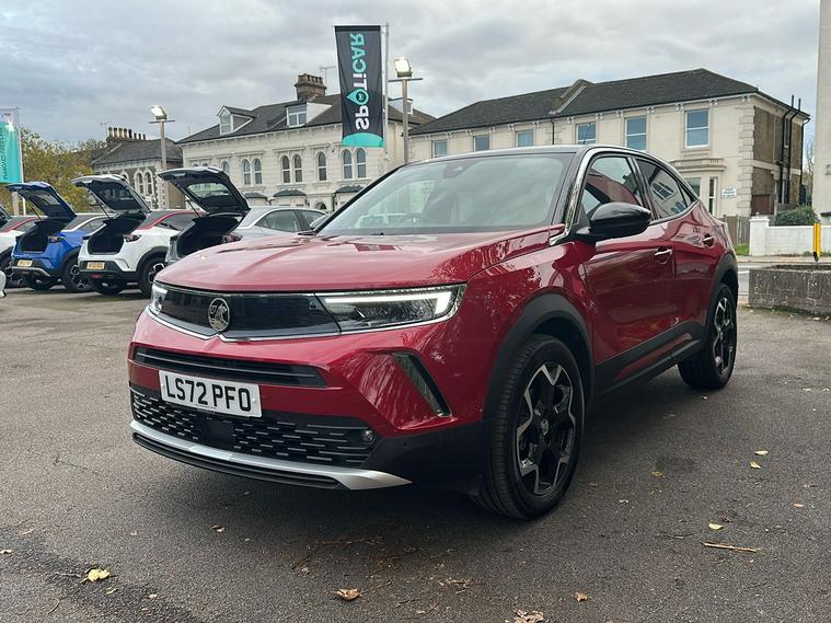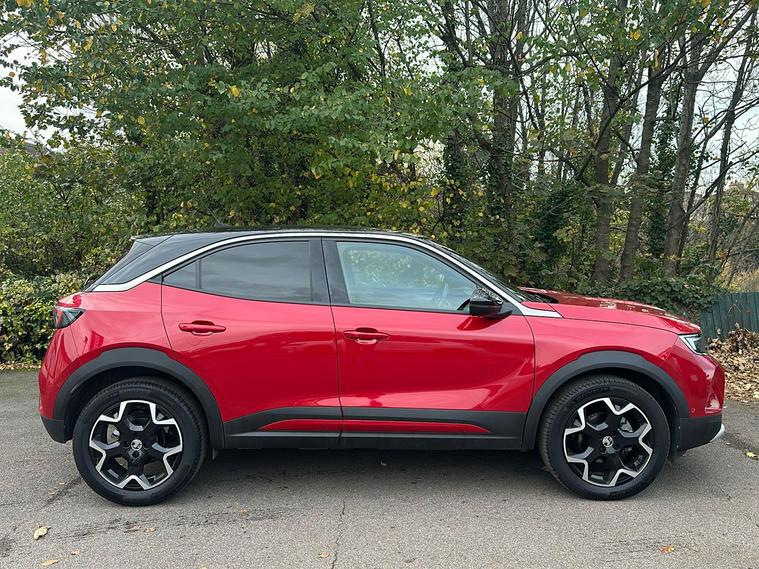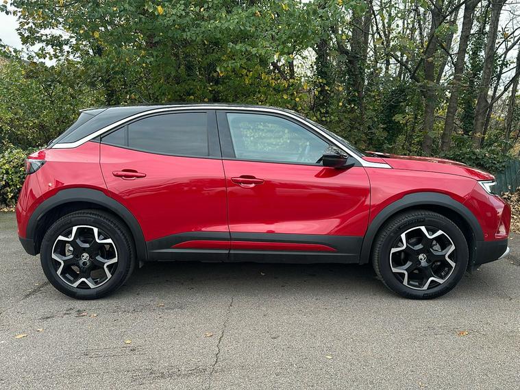 Finished in a striking metallic Velvet Red, this used Vauxhall Mokka Ultimate blends style and practicality perfectly. Registered in late 2022, it offers seating for five with easy-access doors and a flexible boot space expanding up to 1, 105 litres when needed. Enjoy a smooth drive thanks to the automatic gearbox and responsive performance, accelerating from 0 to 62 mph in just 9.2 seconds with a top speed of 124 mph. The combined fuel efficiency is an impressive 47.9 mpg, helping keep running costs down. As a ULEZ compliant vehicle, it is ideal for driving in and around London and other low emission zones. Distinctive alloy wheels and bold black roof complete the look, while intelligent features such as panoramic rear view camera, heated front seats, wireless device charging, and advanced safety technologies add day-to-day ease and reassurance. This Mokka offers comfort, efficiency and standout presence on every journey.