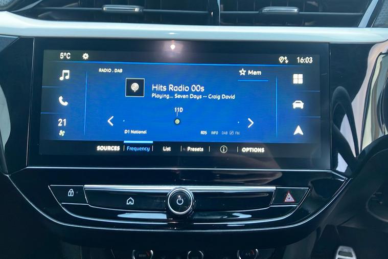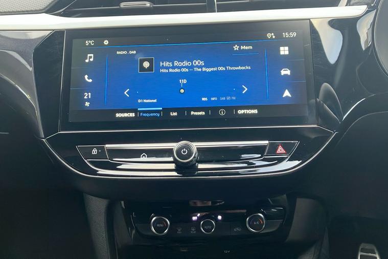 Experience driving enjoyment and style with this used 2023 Vauxhall Corsa in striking metallic Carbon Black. Registered in March 2024 with only one previous keeper, this five-door hatchback offers practicality and comfort for up to five passengers and boasts a generous boot space of up to 1, 118 litres. The responsive 1.2 Turbo petrol engine delivers 99 horsepower and a top speed of 120 mph, while achieving an impressive combined fuel efficiency of 53.3 mpg. Finished with premium details such as diamond-cut hi-gloss black alloy wheels and distinctive sports body styling, its sleek appearance stands out on the road. Inside, you’ll enjoy the convenience of a modern 10-inch touchscreen multimedia system and cutting-edge safety features, including a rear parking camera and Side Blind Spot Alert. ULEZ compliant for peace of mind driving in London and other low emission zones.