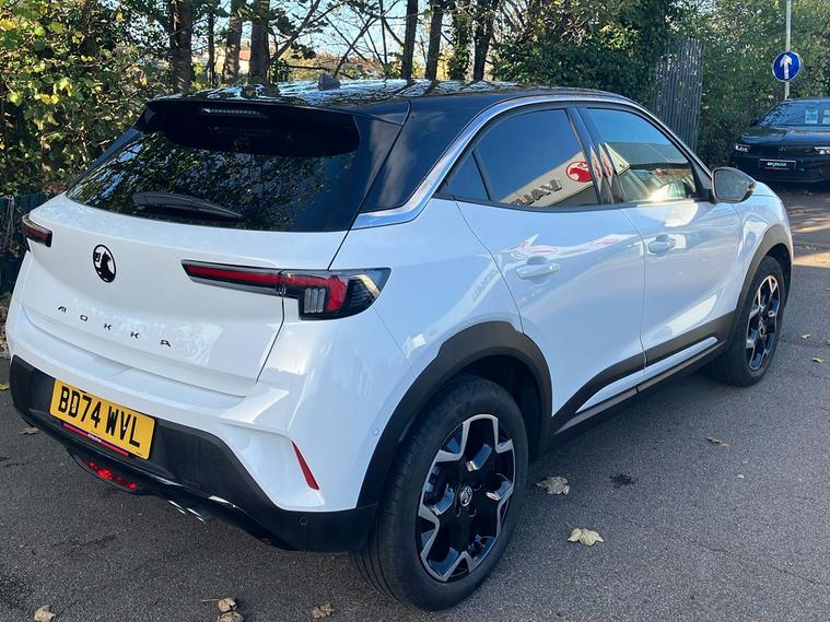 Presenting a used 2024 Vauxhall Mokka Ultimate in stunning White Jade, offering a modern take on the compact SUV. Powered by an efficient 1.2 Turbo petrol engine, this model blends economy with performance, returning up to 51.4 mpg combined. Its manual transmission provides engaging control, while 136 PS and a 0–62 mph acceleration in just 9.1 seconds deliver a lively drive, with a top speed of 125 mph. Inside, youll find thoughtful touches such as massage function for the driver’s seat and a panoramic rear view camera for added confidence. The flexible boot space adapts easily, ranging from 350 to 1, 105 litres. UKs low emission requirements are met, as this vehicle is ULEZ compliant, making it ideal for city driving. This Mokka Ultimate is a practical and stylish choice for those seeking comfort and convenience on every journey.