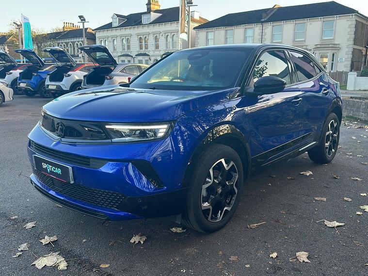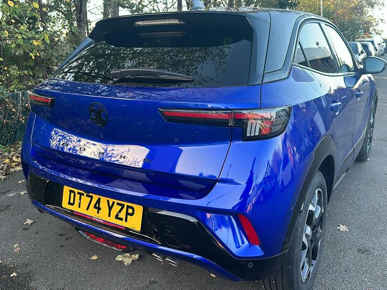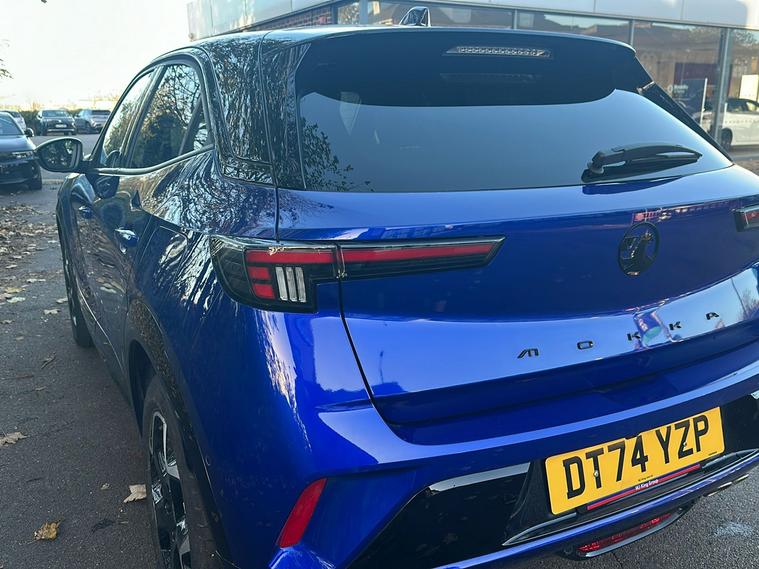Experience a striking blend of style and practicality with this used 2024 Vauxhall Mokka Ultimate, finished in eye-catching Colibri blue metallic paint. This five-door SUV combines dynamic design with versatility, offering comfortable seating for five and a generous 350-litre boot, expandable to 1, 105 litres. Its 1.2 turbocharged petrol engine delivers 128bhp, reaching a top speed of 126mph while maintaining an impressive combined 46.3mpg. The smooth automatic transmission and front-wheel drive make every journey enjoyable. Features such as a panoramic rear-view camera, adaptive cruise control, driver seat massage function, ambient lighting, and heated front seats create a refined and convenient driving environment. With advanced safety assistance, smart connectivity including wireless phone charging, and one previous keeper, this Mokka Ultimate brings modern comfort to everyday motoring. This vehicle is ULEZ compliant, ensuring peace of mind for driving in low emission zones.