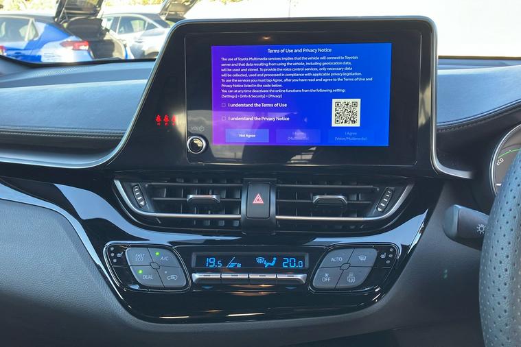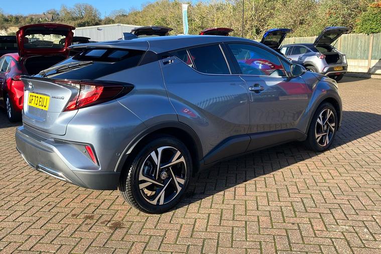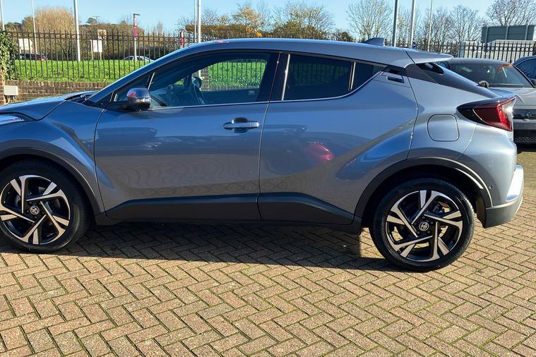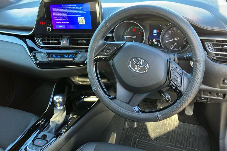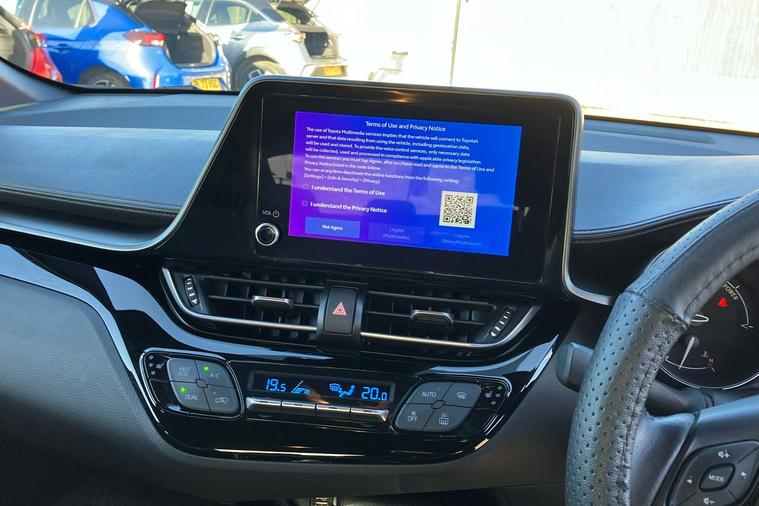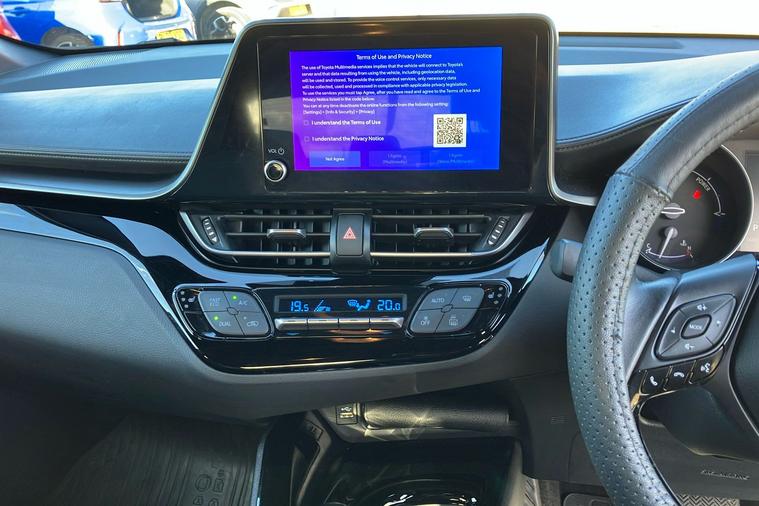 Introducing this stylish grey 2023 Toyota C-HR Design, a practical and efficient hybrid SUV registered in late September 2023. With only one previous keeper, this automatic, front wheel drive hybrid offers impressive combined fuel efficiency of 53.3 mpg and is equipped with a 2.0-litre petrol engine producing 181 hp. Enjoy a smooth drive with features like adaptive cruise control, heated front seats, dual-zone automatic air conditioning, Bluetooth connectivity, and an 8-inch HD multimedia system. The car also comes with innovative safety enhancements such as a blind spot monitor and pre-collision warning with pedestrian detection. Ample interior space accommodates up to five passengers and offers a generous 424-litre boot. With a top speed of 111 mph, this model blends performance and comfort. Best of all, this vehicle is ULEZ compliant, ensuring it’s ready for journeys into the heart of London and beyond.