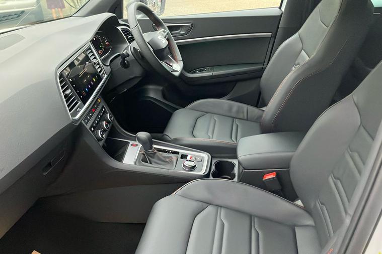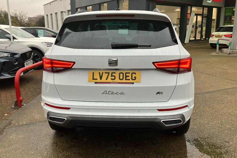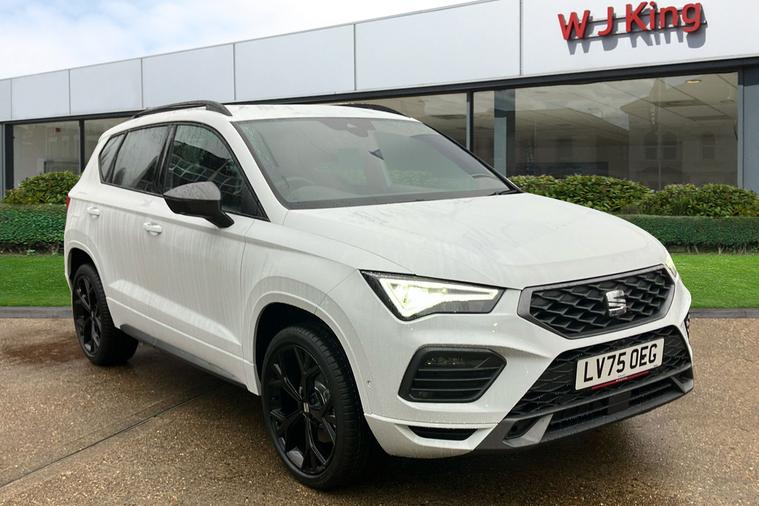 Presenting the SEAT Ateca FR Black Edition, a striking used SUV finished in eye-catching Metallic Nevada White. This 2020 model is equipped with an automatic transmission and is powered by a 1.5-litre petrol engine, offering up to 42.2 miles per gallon. Enjoy an impressive boot capacity of 510 litres and comfortable seating for five. The Ateca boasts a sleek design enhanced by 19-inch glossy black alloy wheels and features such as heated front seats, adaptive cruise control, and a digital cockpit. Practical touches like an electric tailgate with virtual pedal and top view camera add modern convenience. Strong safety credentials include multiple airbags and driving assistance packs. With a top speed of 126 mph, this SUV delivers both efficiency and performance. Plus, it meets Euro 6 standards, ensuring ULEZ compliance for peace of mind when driving in city centres.