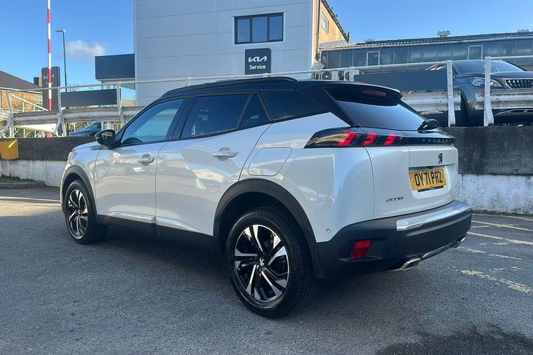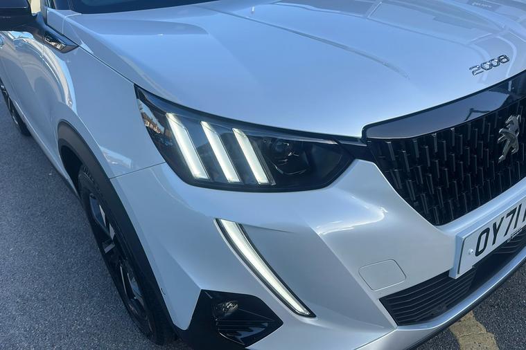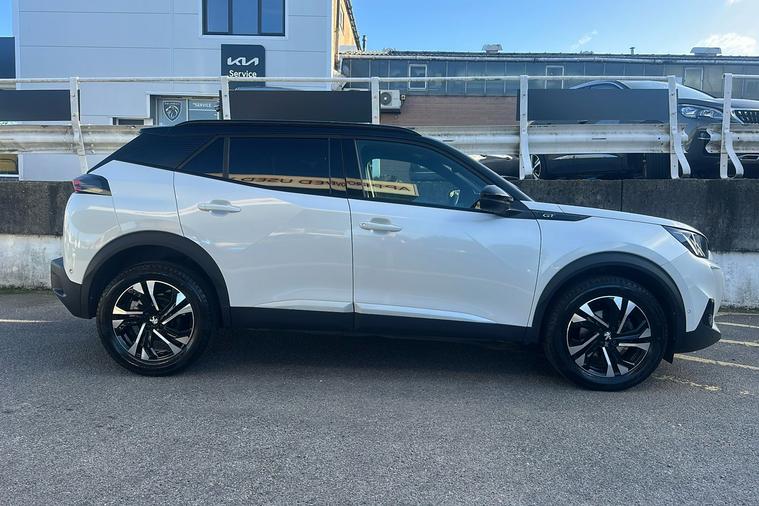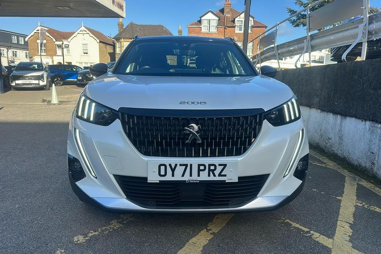 Presenting the stylish Peugeot 2008 SUV GT, finished in Metallic Okenite White. Registered in October 2021 and with just one previous keeper, this used model offers a refined driving experience with its automatic transmission and front wheel drive. Powered by a 1.2-litre petrol engine, it delivers a lively 129 horsepower and a top speed of 122 mph, while maintaining impressive fuel efficiency with a combined 48.3 mpg.This spacious SUV comfortably seats five and provides a generous boot, expandable from 434 to 1467 litres. The GT trim stands out with its striking 17-inch diamond cut alloy wheels, heated front seats, full LED headlights with Smartbeam Assist, and a panoramic reversing camera. Benefitting from Euro 6 emissions status, this car is ULEZ compliant, making it ideal for city driving. Embrace practicality, innovative features and modern design with the Peugeot 2008 SUV GT.