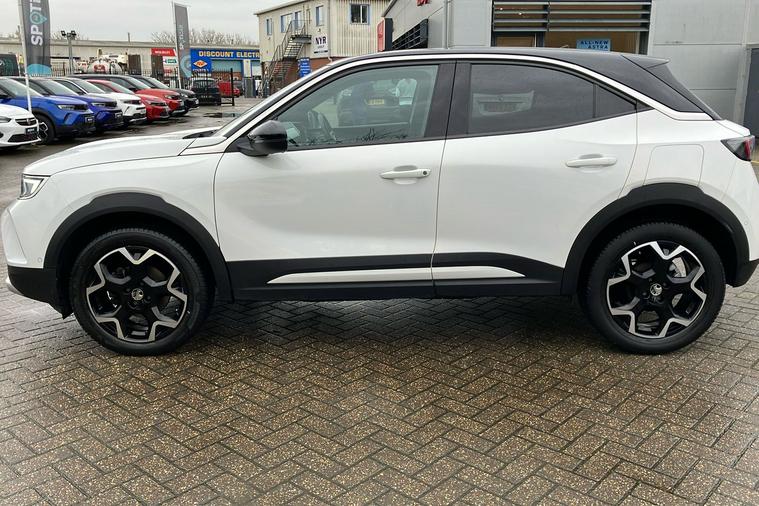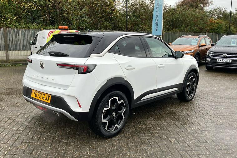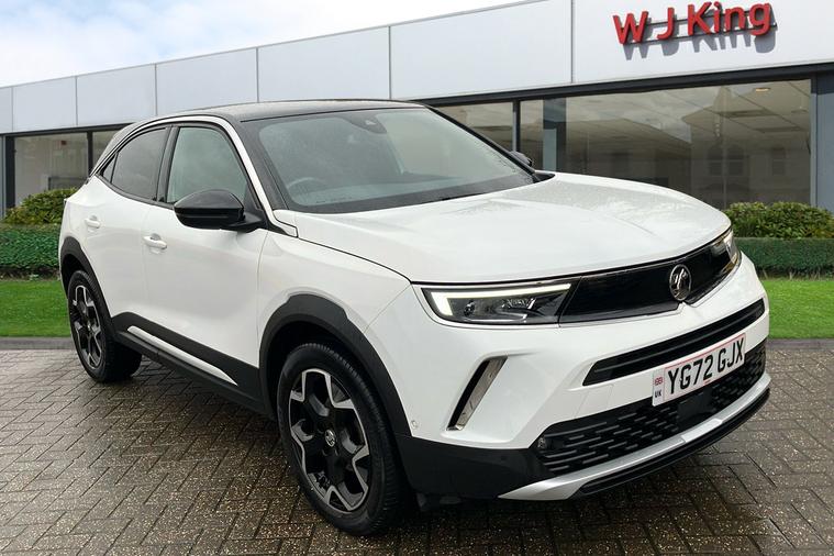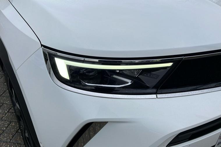 Experience the sophistication and versatility of this used Vauxhall Mokka Ultimate, finished in Brilliant White Jade paint. Registered in late 2022 with just one previous keeper, this stylish SUV offers an engaging drive with its 1.2-litre turbocharged petrol engine and smooth automatic transmission. Accelerating from 0 to 62 mph in just 9.2 seconds and reaching a top speed of 124 mph, it delivers both efficiency and performance with a combined fuel economy of 47.9 mpg. Enjoy the spacious interior, accommodating five passengers comfortably, and benefit from generous boot space expandable up to 1, 105 litres. The Mokka Ultimate stands out with features such as a panoramic rear view camera, IntelliLux LED Matrix headlights, Advanced Park Assist, and a state-of-the-art navigation system. Fully compliant with ULEZ standards, this vehicle offers peace of mind for city driving and beyond.