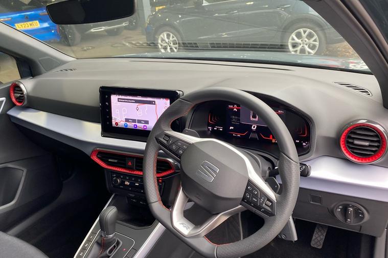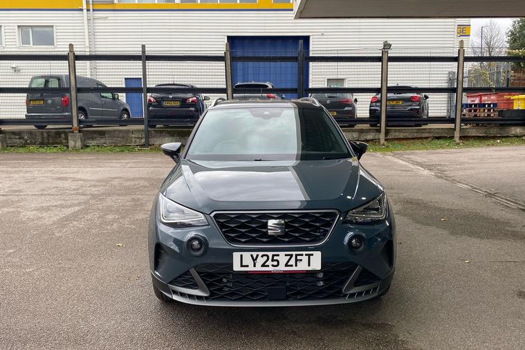 Presenting the SEAT Arona FR, a stylish used SUV finished in eye-catching Solid Fiord blue with a contrasting black roof. This 2025 model combines practicality and elegance, offering a spacious interior for five passengers alongside a generous 400-litre boot. Powered by a 1.0-litre petrol engine, it delivers 113 horsepower and achieves an impressive combined 50.4 miles per gallon, making it efficient for both city and motorway journeys. The automatic transmission provides a smooth driving experience, while front wheel drive ensures confident handling. With a top speed of 120 mph, the Arona is both capable and dynamic. Distinctive features such as 17-inch alloy wheels, a contemporary interior ambience, and advanced navigation enhance every journey. ULEZ compliant, this Arona FR meets the latest emissions standards, making it an ideal choice for driving in and around London. Enjoy comfort and modern style with this standout SUV.