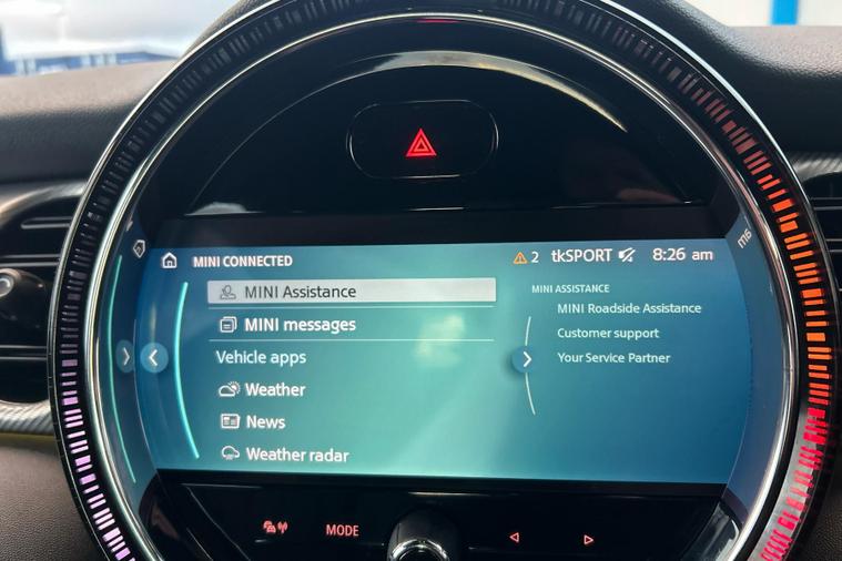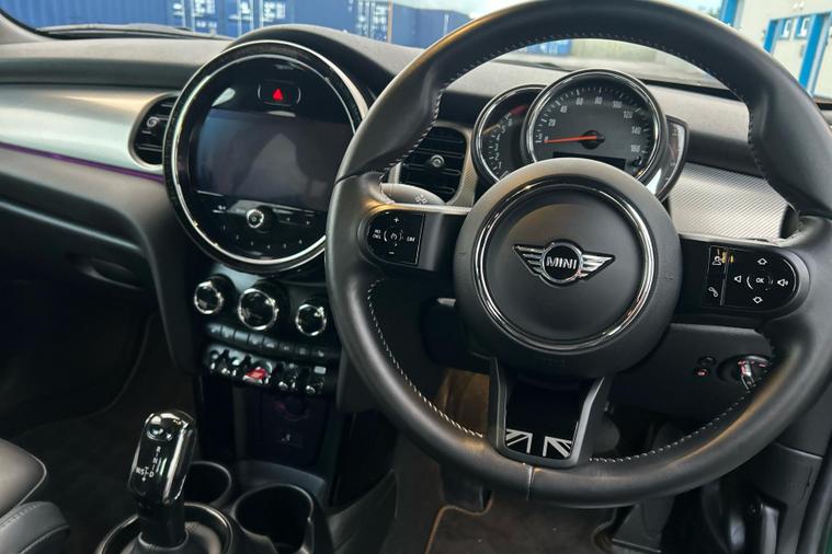 - Walknappa Leather Steering Wheel with Grey Seam - MINI Yours Badge on Piano Black Lower Steering Wheel Spoke