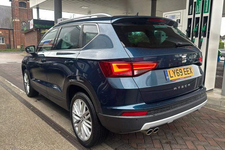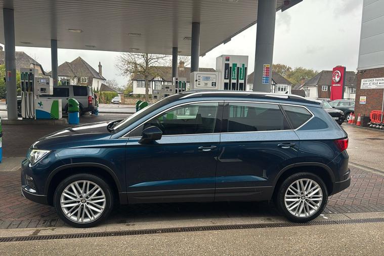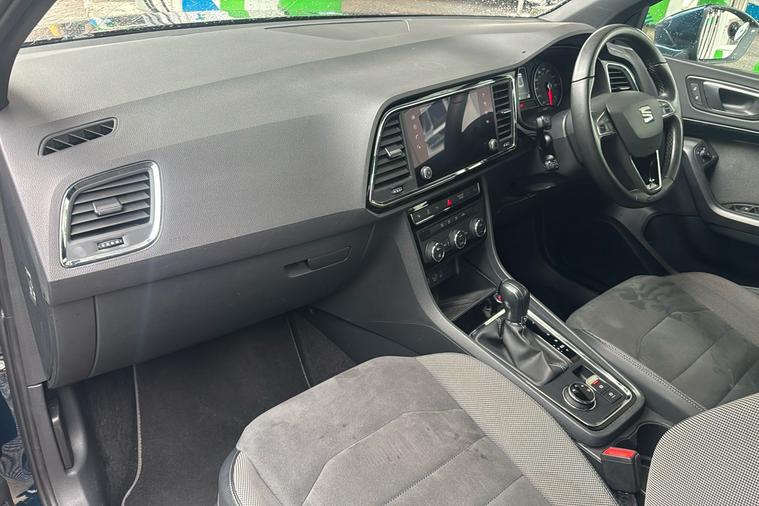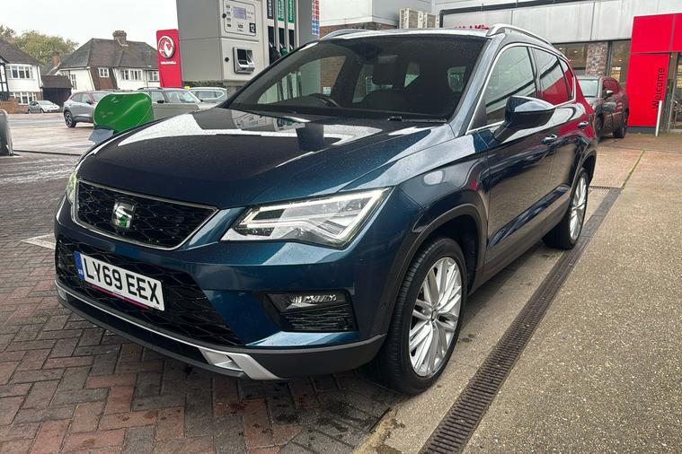 Discover the SEAT Ateca XCELLENCE, a stylish used SUV finished in striking Metallic Lava Blue. Registered in December 2019, this versatile vehicle comfortably seats five and features a generous 510-litre boot, making it ideal for everyday journeys or weekend escapes. Powered by a 1.5-litre petrol engine with automatic transmission, it offers a smooth drive and an impressive combined fuel economy of 40.9 mpg. The Ateca XCELLENCE stands out with its chrome accents, advanced interior lighting, and rear-view camera, ensuring a premium and easy driving experience. Park Assist and dark tinted rear windows add further convenience and comfort. With a top speed of 123 mph and thoughtful features such as keyless entry and wireless phone charging, this SUV delivers a blend of practicality and sophistication. Enjoy a blend of comfort, capability, and style – in this eye-catching SEAT Ateca.ULEZ compliant status: Not specified.