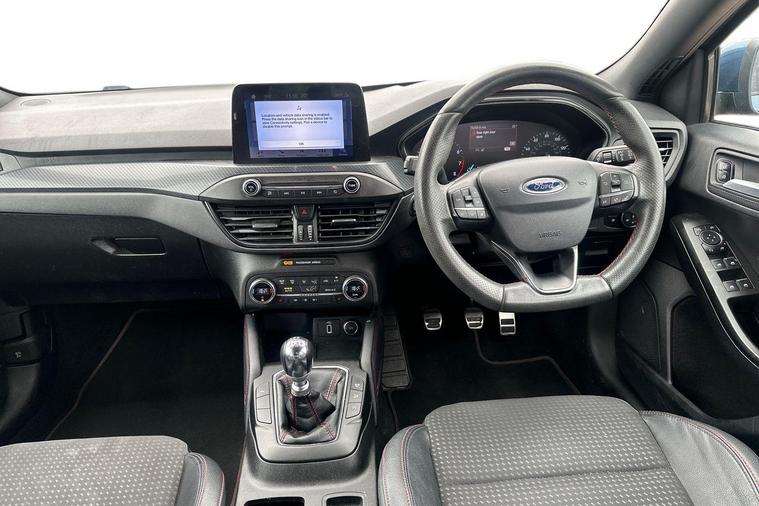 This Ford Focus, registered in 2019, is the ST-Line X variant, offering a blend of style and practicality. As a ST-Line X trim, it boasts a 1.0L petrol engine and meets Euro 6 emission standards. The vehicle is equipped with the Ford SYNC3 DAB Navigation System, which includes Android Auto, Apple CarPlay, and Bluetooth connectivity, ensuring you stay connected on the go. Convenience is enhanced with automatic on-off headlights and dual-zone electronic automatic temperature control, including climate control. For added comfort, both the driver and passenger seats are heated. Manoeuvring is made easier with front and rear parking sensors.The Ford Focus stands out with its low CO2 emissions, making it an environmentally conscious choice. The car also delivers an impressive fuel economy of 48 mpg, saving you money at the pump. In addition, the large boot space makes this vehicle ideal for families or anyone needing extra room for luggage or shopping.