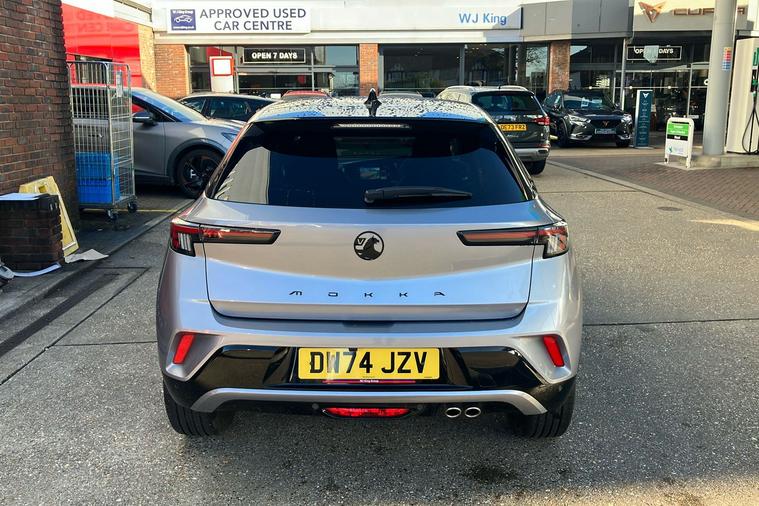 Introducing the 2024 Vauxhall Mokka Ultimate, finished in striking two coat metallic Contrast Grey. This stylish SUV combines generous space with an efficient 1.2 Turbo petrol engine and a smooth automatic transmission. Offering seating for five and a versatile boot with up to 1, 105 litres of space, it adapts effortlessly to your lifestyle. Designed for comfort and ease, it features handy touches such as a heated steering wheel and seats, ambient lighting, and intuitive controls. Modern conveniences include a wireless mobile phone charger, panoramic rear-view camera, and seamless smartphone connectivity. With a combined fuel economy of 46.3 mpg and a top speed of 126 mph, this model balances performance with practicality, making it ideal for daily commutes or weekend adventures. This car is ULEZ compliant, meaning you can drive in low-emission zones with confidence. Experience contemporary driving at its finest in the Vauxhall Mokka Ultimate.