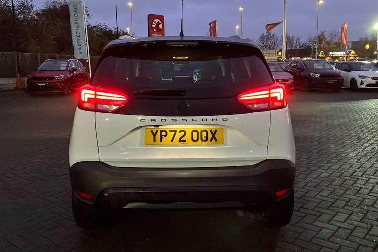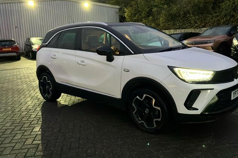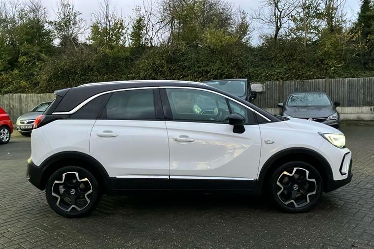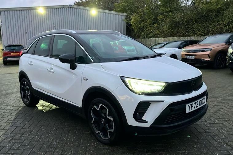 Presenting a used 2022 Vauxhall Crossland in stylish White Jade, offering a comfortable and practical drive. This automatic SUV delivers a smooth experience with seating for five, ample interior space, and a flexible boot capacity ranging from 410 to 1, 255 litres – ideal for everything from shopping trips to holidays. The Crossland blends efficiency with performance, achieving up to 44.8 mpg combined. With a 1.2-litre turbo petrol engine producing 128 bhp, it accelerates from 0-62 mph in just 9.9 seconds and reaches a top speed of 123 mph. Safety and peace of mind are built-in, with a range of protective features including various airbags and advanced driver aids. Registered in October 2022, and previously owned by just one keeper, this Vauxhall Crossland is a smart choice for those seeking a stylish, practical, and efficient SUV. ULEZ compliant.