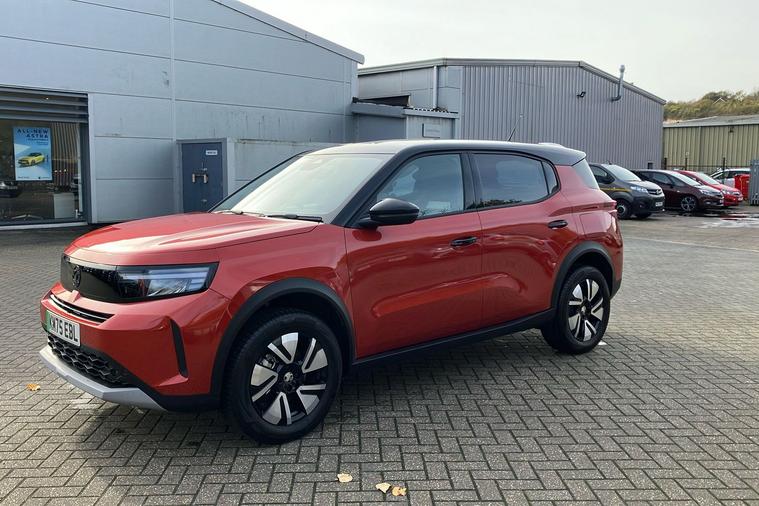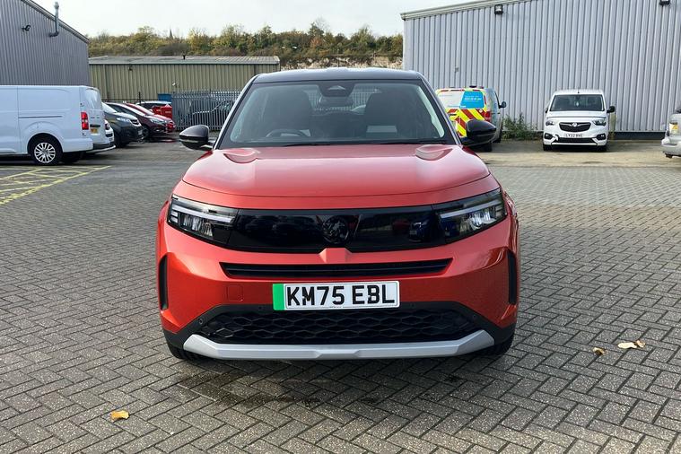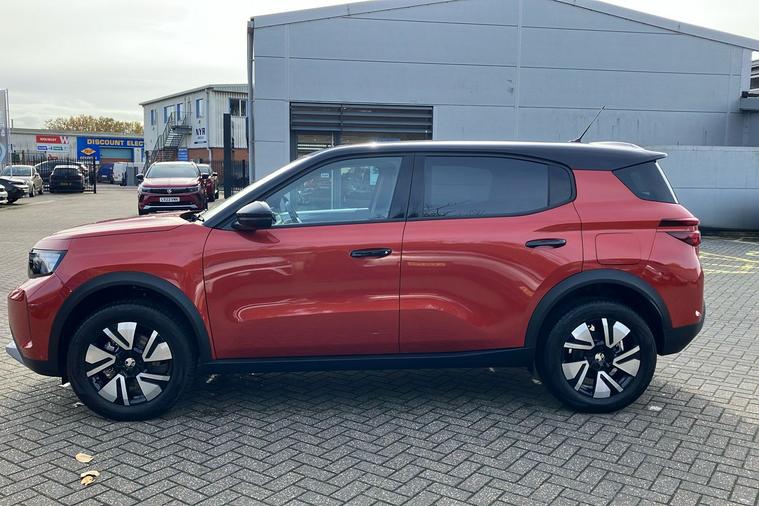 Experience the 2024 Vauxhall Frontera Electric in eye-catching Special Metallic Canyon Orange. This used SUV offers a fully electric driving experience with a range of up to 186 miles, making it ideal for everyday journeys or weekend adventures. With seating for five and generous cargo space ranging from 460 to 1600 litres, it adapts effortlessly to both family life and active lifestyles. The automatic transmission and front wheel drive make city driving a breeze, while a top speed of 88 mph allows for confident motorway trips. Standout features include a 10-inch touchscreen, wireless device integration, blind spot detection, parking camera, and wireless charging. With one previous keeper, this car provides modern convenience with eco-friendly credentials. Importantly, the Frontera Electric is ULEZ compliant, ensuring worry-free driving in London and other low-emission areas. Discover style, versatility, and peace of mind in this impressive electric SUV.