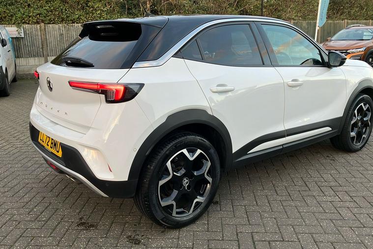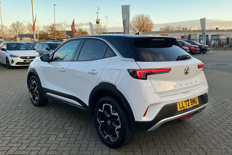 Presenting a stylish and dynamic Vauxhall Mokka Ultimate SUV finished in elegant White Jade. First registered in October 2022 and with only one previous keeper, this automatic, petrol-powered model combines confident road presence with comfort for up to five people. With an efficient 1.2-litre engine delivering 128 horsepower, enjoy smooth cruising and brisk acceleration from 0–62 mph in just 9.2 seconds, reaching a top speed of 124 mph. Its impressive combined fuel economy of up to 47.9 mpg helps keep running costs in check. The 350-litre boot expands to 1, 105 litres with the seats down, providing flexible loading space for daily tasks or weekend escapes. This Mokka is also ULEZ compliant, making it ideal for city driving and low-emission zone access. Distinctive alloy wheels and a feature-packed cabin make this a practical and contemporary choice for your next car.