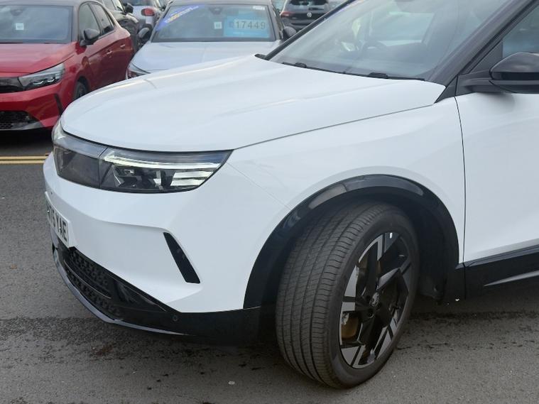 With only 10 miles on the clock, this 2025 Vauxhall Grandland Electric Ultimate represents an exceptional opportunity to own a virtually new electric vehicle. As a single owner vehicle, it boasts a pristine condition and the latest in electric technology. This Ultimate trim level comes equipped with a substantial 81 kWh battery, offering an impressive maximum range of 320 miles from new. Charging is convenient, with a full charge at home using a 7kW charger taking approximately 6 hours and 45 minutes, while rapid public charging can take you from empty to 80% in just 34 minutes. Experience superior comfort and convenience with features like Automatic Air Conditioning, a Heated Steering Wheel for those chilly mornings, and advanced Pixel Matrix Lights with a striking 3D Illuminated Vizor. Parking is made effortless thanks to Front and Rear Parking Distance Sensors complemented by a 360 Degree Panoramic Camera. Stay connected and powered up with the integrated Wireless Charger for Mobile Devices. The Grandland Electric Ultimate also offers generous boot space, making it a practical choice for families and everyday life, highlighting its advantage over other vehicles in its class.