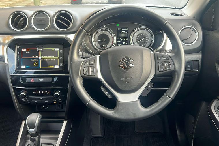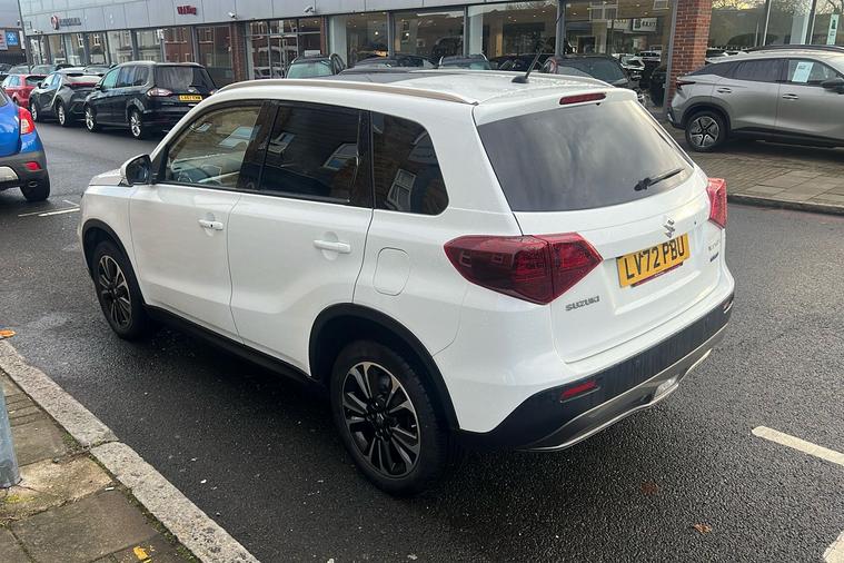 Finished in white, this used Suzuki Vitara SZ5 Hybrid is a stylish and practical SUV first registered in November 2022. Its hybrid powertrain is designed for efficiency, boasting an impressive combined fuel economy of 53.2 mpg. With comfortable seating for five and a flexible boot offering up to 642 litres of space, the Vitara easily adapts to a variety of lifestyles. The automatic transmission and front wheel drive make everyday driving straightforward, while features such as adaptive cruise control, lane departure warning, and a blind spot monitor help to enhance confidence on the road. Enjoy the added luxury of a double sliding panoramic sunroof and the convenience of both front and rear parking sensors, along with a rear parking camera. This Vitara is also compliant with ULEZ regulations, making it a strong choice for those needing to travel in low emission zones.