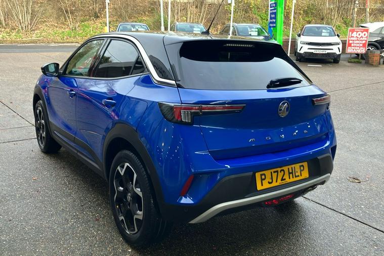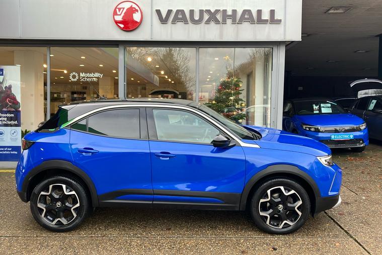 Discover the style and performance of this used Vauxhall Mokka Ultimate, finished in striking Metallic Boracay Blue. Registered in October 2022 and with just one previous keeper, it offers a dynamic drive from its 1.2 Turbo petrol engine and smooth automatic transmission. Enjoy responsive handling thanks to front-wheel drive and make the most of impressive fuel economy with a combined 47.9 mpg. The cabin combines comfort and practicality with space for five, a versatile boot, and distinctive design touches. Standout features include IntelliLux LED Matrix headlights, heated front seats, a panoramic rear-view camera, wireless phone charging, and a 10-inch Multimedia Navi Pro system with live navigation. With advanced safety and driver assistance technologies, the Mokka Ultimate ensures peace of mind on every journey. This vehicle is ULEZ compliant, offering greater flexibility for city driving.