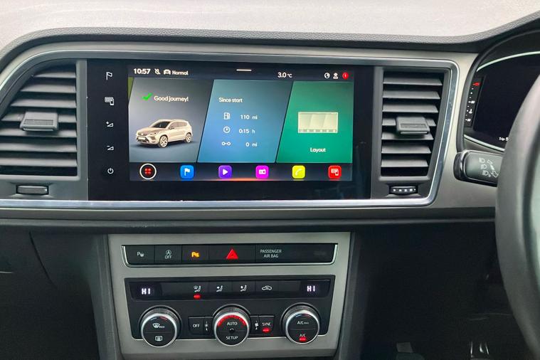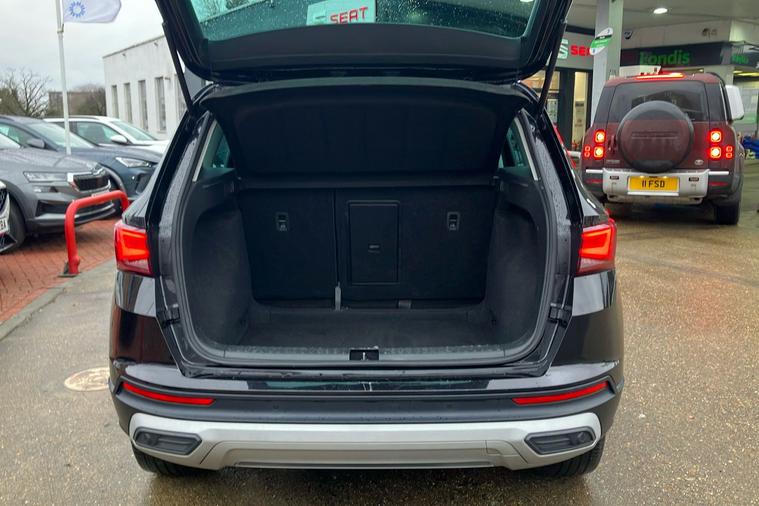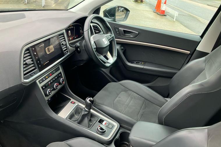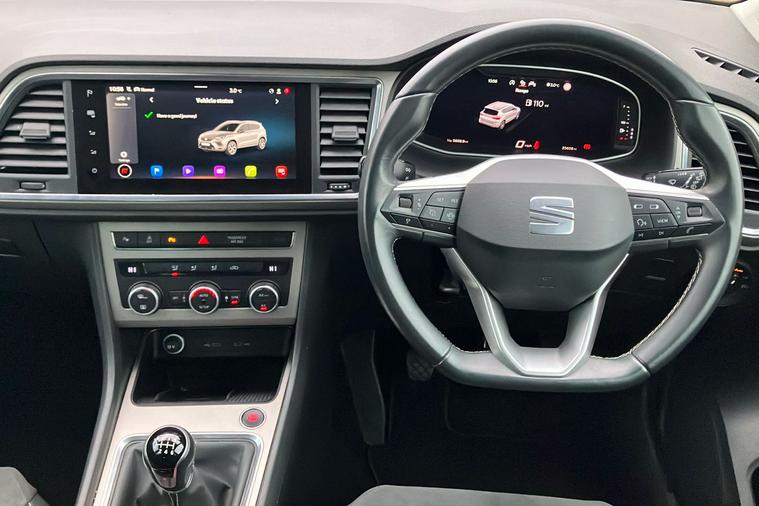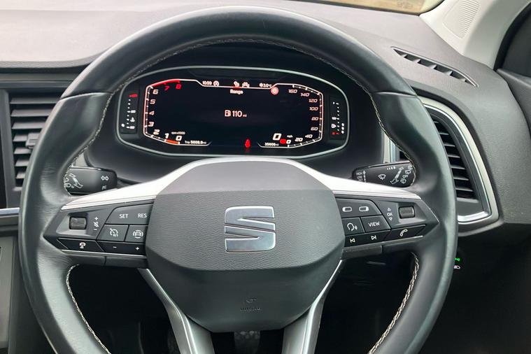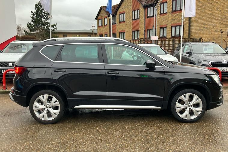 Step into comfort and style with this 2020 SEAT Ateca Xperience, finished in sophisticated Metallic Crystal Black. With just one previous keeper and first registered in November 2022, this spacious SUV offers seating for five and an impressive boot capacity of 510 litres. Powered by a responsive 1.5 litre petrol engine delivering 148 hp and a maximum speed of 126 mph, it combines performance with impressive fuel efficiency at 43.5 mpg combined. Enjoy thoughtful touches such as dark tinted rear windows, ambient multicoloured LED lighting, and illuminated aluminium door sills. Stay connected and navigate effortlessly with the onboard navigation system, and take advantage of wireless phone charging for added convenience. Safety is enhanced with features like Park Assist, a rear view camera, and a tiredness recognition system. This Ateca meets Euro 6 standards, making it ULEZ compliant for worry-free city driving.