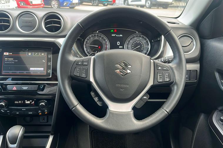 This stylish grey Suzuki Vitara, first registered in November 2023, is a sought-after used SUV that offers a rewarding driving experience with excellent fuel efficiency of up to 53.2mpg (combined) from its hybrid engine. Featuring an automatic gearbox and front wheel drive, it delivers 113 horsepower and a maximum speed of 111mph, making it suitable for a variety of journeys. The interior comfortably accommodates five passengers with versatile boot space, offering 289 litres with the seats up and expanding to 642 litres when folded down. Additional highlights include a panoramic sunroof, rear parking camera, navigation system, adaptive cruise control, and a blind spot monitor for enhanced peace of mind. The Suzuki Vitara is ULEZ compliant, ensuring it meets London’s latest ultra-low emission standards, making it a considerate choice for city driving as well as longer trips.