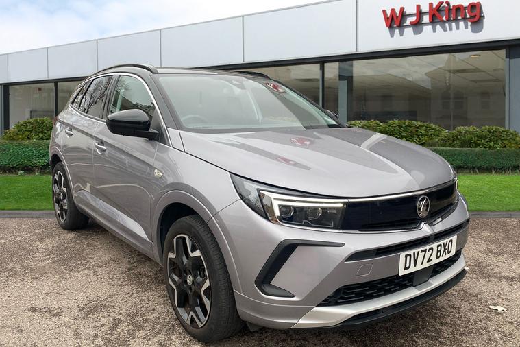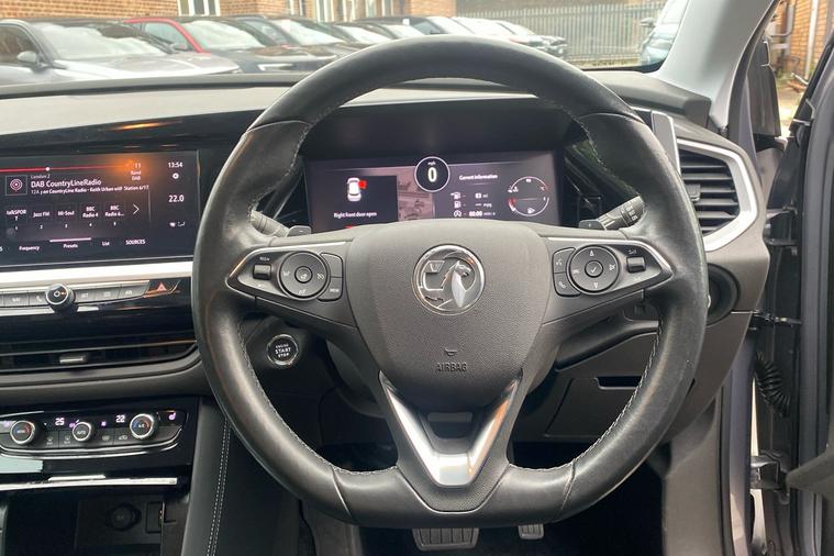 Introducing the 2021 Vauxhall Grandland Elite, a stylish SUV finished in striking two coat metallic Graphic Grey. With just one previous keeper and registered in September 2022, this car delivers a refined driving experience and practical versatility. The smooth automatic transmission is paired with a 1.2-litre turbocharged engine, producing 128 hp for confident performance, reaching up to 121 mph. Enjoy up to 44.1 mpg combined for efficiency on every journey. The Grandland Elite boasts an expansive boot offering up to 1, 652 litres of load space with the seats folded, perfect for family trips or larger loads. Advanced features such as Adaptive IntelliLux LED Pixel Headlights, a 180-degree rear-view parking camera, heated ergonomic front sports seats, and a power tailgate with foot sensor improve comfort, safety and convenience. This Grandland is ULEZ compliant, making city driving hassle-free. Experience the perfect blend of sophistication and everyday usability.