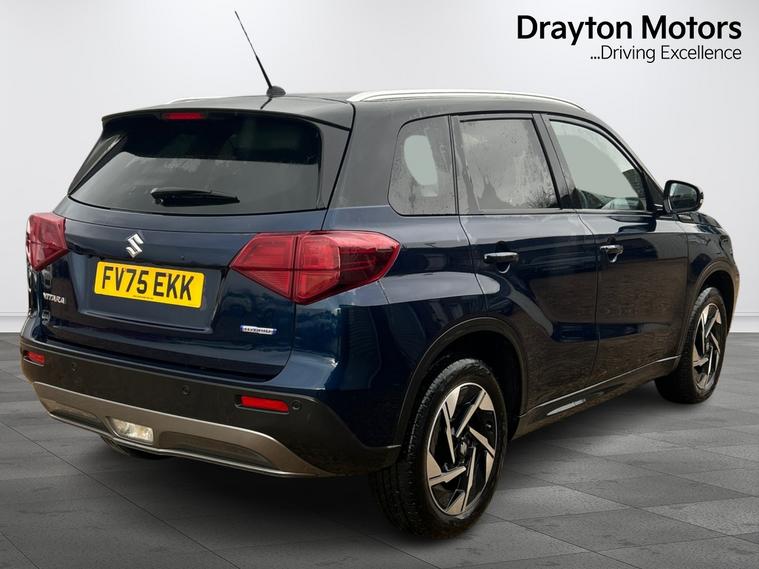 This 2025 Suzuki Vitara Ultra is a superb example, having had only one owner since new. This stylish SUV is equipped with a responsive 1.4 litre petrol hybrid engine, meeting the Euro 6 emission standards. Its Ultra trim boasts practical features such as LED Multi-Reflector Headlamps for excellent visibility, automatic headlamps that adjust to light conditions, and integrated Bluetooth for seamless audio streaming and calls. Parking is made easier with a rear parking camera and front parking distance sensors, ensuring confidence in all situations.The Suzuki Vitara Ultra offers impressive efficiency, achieving a highlight fuel economy of 53 miles per gallon, which is notably better than many other vehicles in its class. Furthermore, its low CO2 emissions contribute to a more environmentally conscious drive. This combination of advanced technology, excellent fuel economy, and low emissions makes the Vitara Ultra a compelling choice for those seeking a well equipped and economical compact SUV.