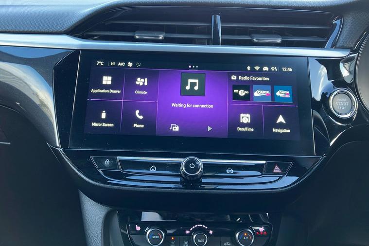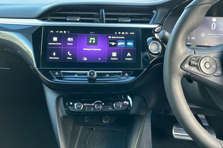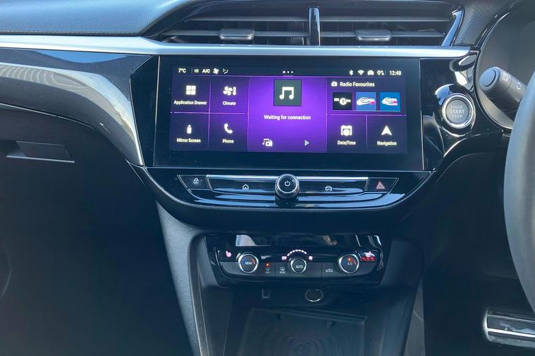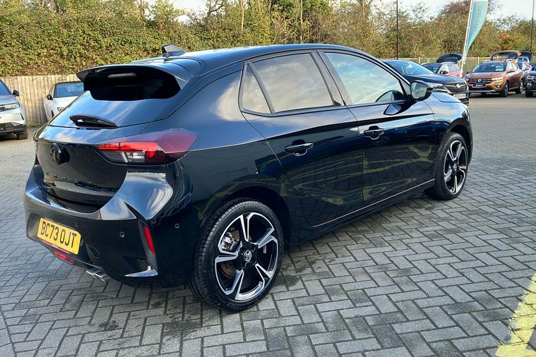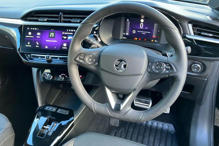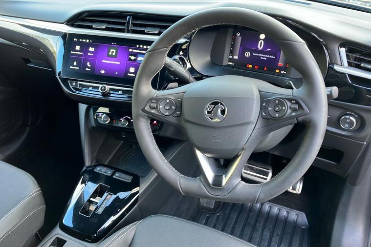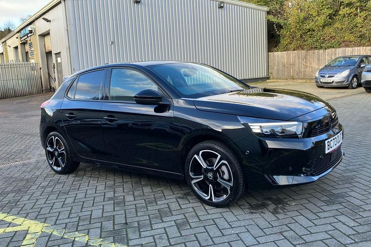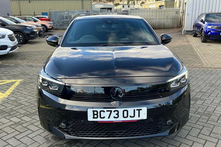 Introducing this 2023 Vauxhall Corsa Ultimate, presented in striking two-coat metallic Carbon Black. First registered in January 2024, this used five-door hatchback combines modern style with practicality, offering seating for five and a versatile boot space of up to 1, 118 litres. Powered by a responsive 1.2 Turbo petrol engine and automatic transmission, it delivers an impressive combined efficiency of 49.6 mpg and reaches a top speed of 130 mph. The sporty look is enhanced with 17-inch diamond-cut high-gloss black alloy wheels, tinted rear windows, and sports body styling. Inside, enjoy comfort-focused features like massage and lumbar support for the driver’s seat, a panoramic 180-degree rear-view camera, a 10-inch multimedia touchscreen, and an intuitive digital instrument cluster. This Corsa is compliant with ULEZ (Ultra Low Emission Zone) requirements, making it ideal for driving in city and urban areas without restrictions.