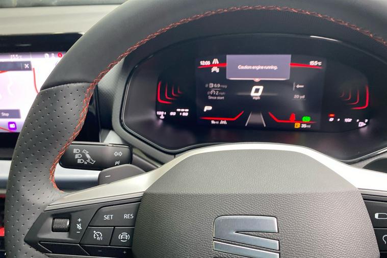 - Perforated Leather Flat-Bottomed Steering Wheel with Red Stitching and FR Logo with Leather Gear Knob and Handbrake