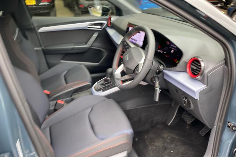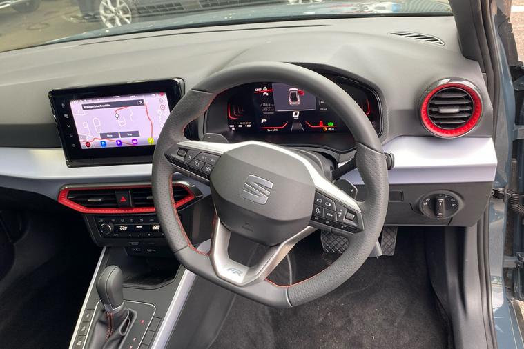 Presenting the SEAT Arona FR, a stylish used SUV finished in eye-catching Solid Fiord blue with a contrasting black roof. This 2025 model combines practicality and elegance, offering a spacious interior for five passengers alongside a generous 400-litre boot. Powered by a 1.0-litre petrol engine, it delivers 113 horsepower and achieves an impressive combined 50.4 miles per gallon, making it efficient for both city and motorway journeys. The automatic transmission provides a smooth driving experience, while front wheel drive ensures confident handling. With a top speed of 120 mph, the Arona is both capable and dynamic. Distinctive features such as 17-inch alloy wheels, a contemporary interior ambience, and advanced navigation enhance every journey. ULEZ compliant, this Arona FR meets the latest emissions standards, making it an ideal choice for driving in and around London. Enjoy comfort and modern style with this standout SUV.
