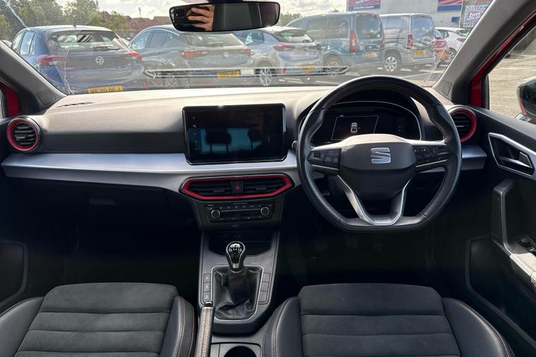 This SEAT Ibiza, registered in 2022 and with a clear vehicle history check, offers peace of mind. As a TSI FR Sport variant with the FR Sport trim, it combines sporty styling with practical features. The 1.0L petrol engine meets Euro 6 emission standards, ensuring lower environmental impact. Enjoy enhanced visibility with the full LED automatic headlights, which include automatic activation. The interior offers a comfortable environment with dual-zone climate control. Stay connected on the move with full link smartphone integration, supporting both Android Auto and Apple CarPlay. The Bluetooth audio streaming with handsfree system allows for seamless connectivity.The Ibiza stands out with its fuel economy, achieving around 52 mpg, meaning fewer trips to the petrol station. The large boot space makes it ideal for shopping trips, holidays, or simply managing daily life. Acceleration from 0-62mph happens in 10.3 seconds, offering a balance of performance and efficiency.