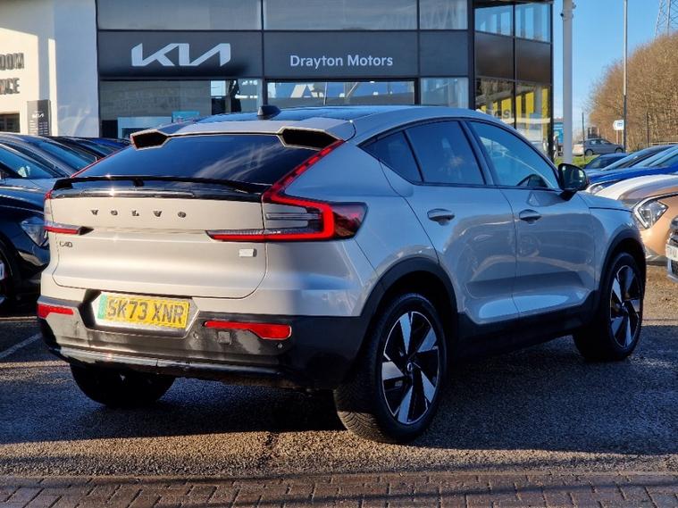 Having arrived in to stock with us in part exchange, we are proud to present for sale this fantastic Volvo C40 Twin Recharge 82kwh Plus Suv 5dr Electric Auto Awd (408 Ps). Finished in the striking Silver Dawn Metallic Paint, this fantastic Volvo C40 benefits from a Full Volvo Service History and is clear to see that it has been the previous owners pride and joy! Coming with a fantastic array of standard specification including a 9in Centre Console Portrait Touch Screen, Apple CarPlay - Wired, Bluetooth Handsfree System, DAB - Digital Audio Broadcasting Radio, Google Automotive Services, Fixed Panoramic Sunroof, Heated Front Seats, Front Park Assist, Rear Park Assist, 2-Zone Electronic Climate Control with Rear Air Vents - Clean Zone Air Quality System with Pollen Filter, Rear Park Assist Camera, Road Sign Information Display, Slippery Road and Hazard Light Alert, High Performance Sound, Volvo Cars Services with App, Wireless-Inductive Mobile Phone Charging and much more besides too! With the balance of Manufacturer’s Warranty until Sept 2026, and with the ability to upgrade from our standard 6m Warranty to a 12m Premium Warranty (including Breakdown & Recovery) for just £499, give us a call to discuss the purchase of this amazing car before its too late!